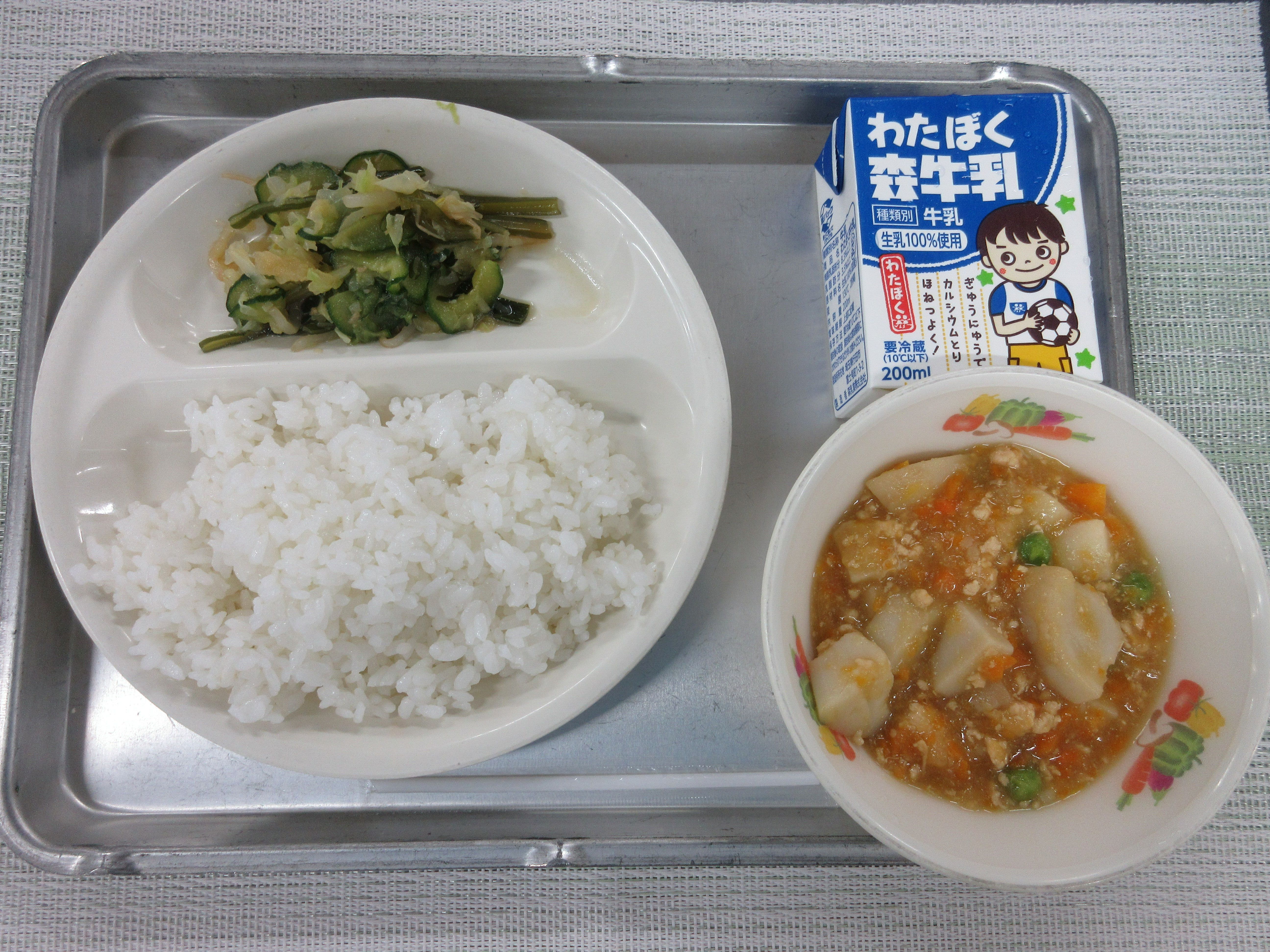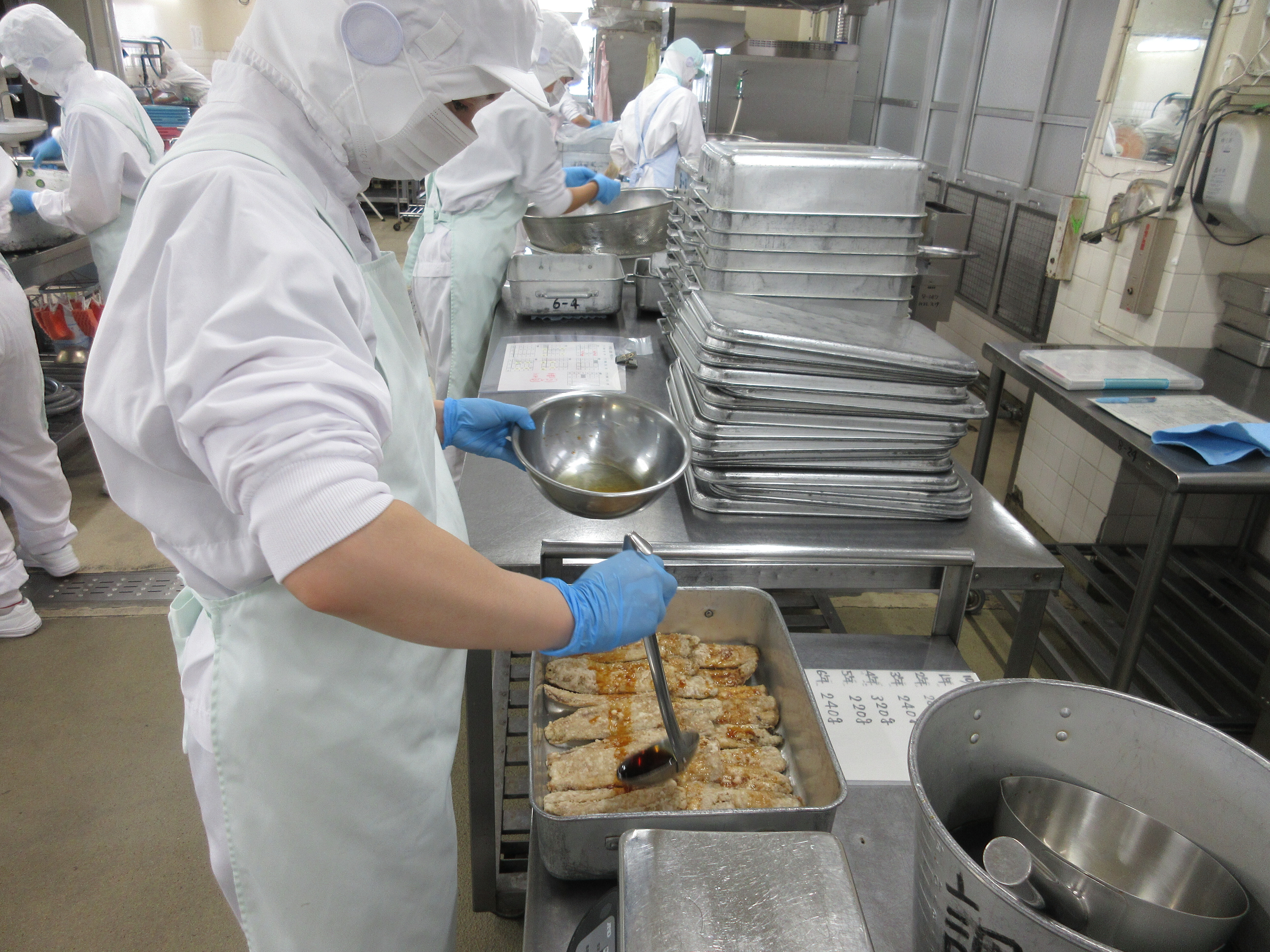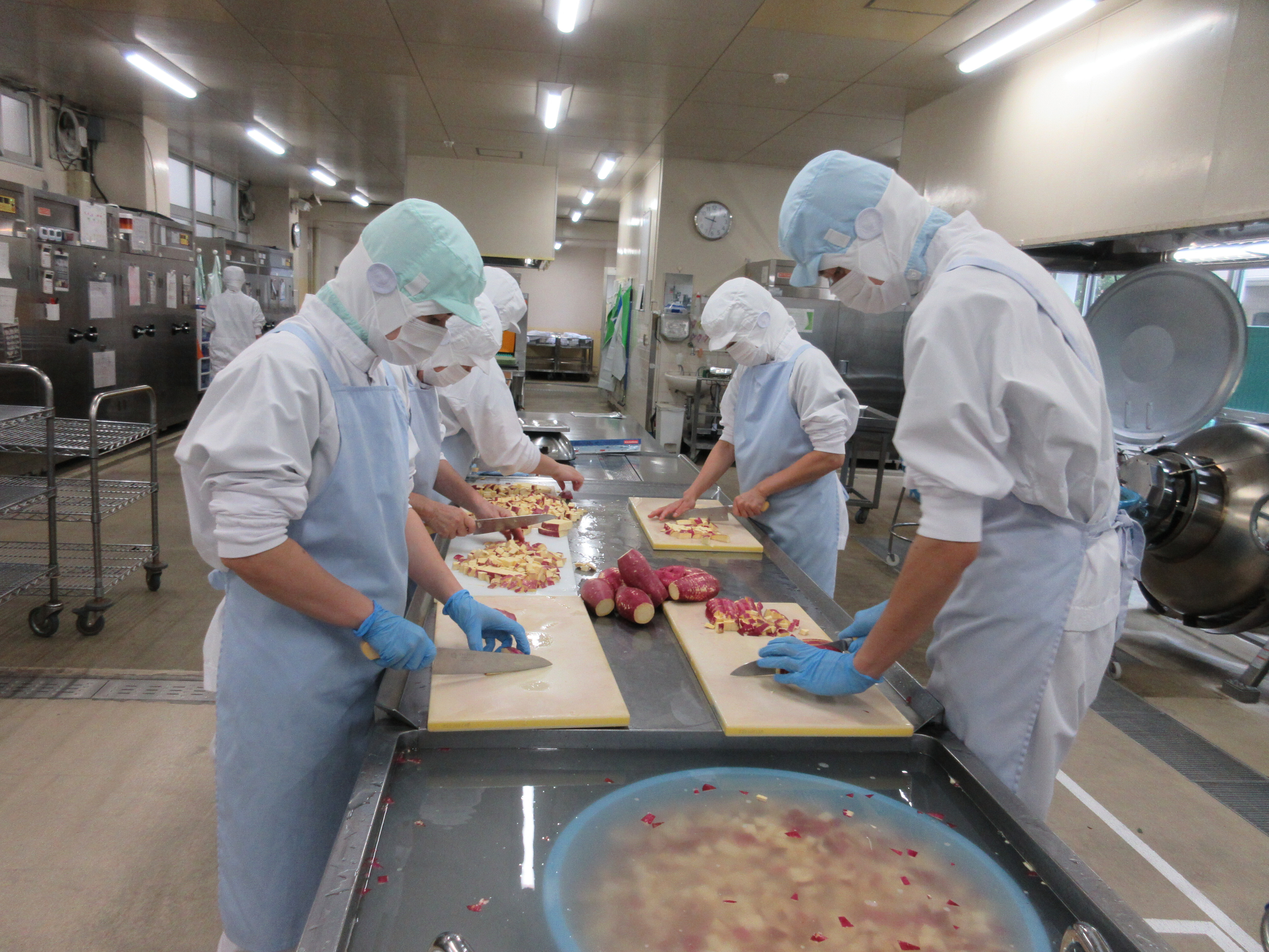 ↑里芋を約60キロ使いました。児童から「里芋は苦手だったけど今日の献立で食べられるようになったよ」と感想を教えてもらいました。ピリから和えも人気で、率先してお代わりしている様子も見られました。