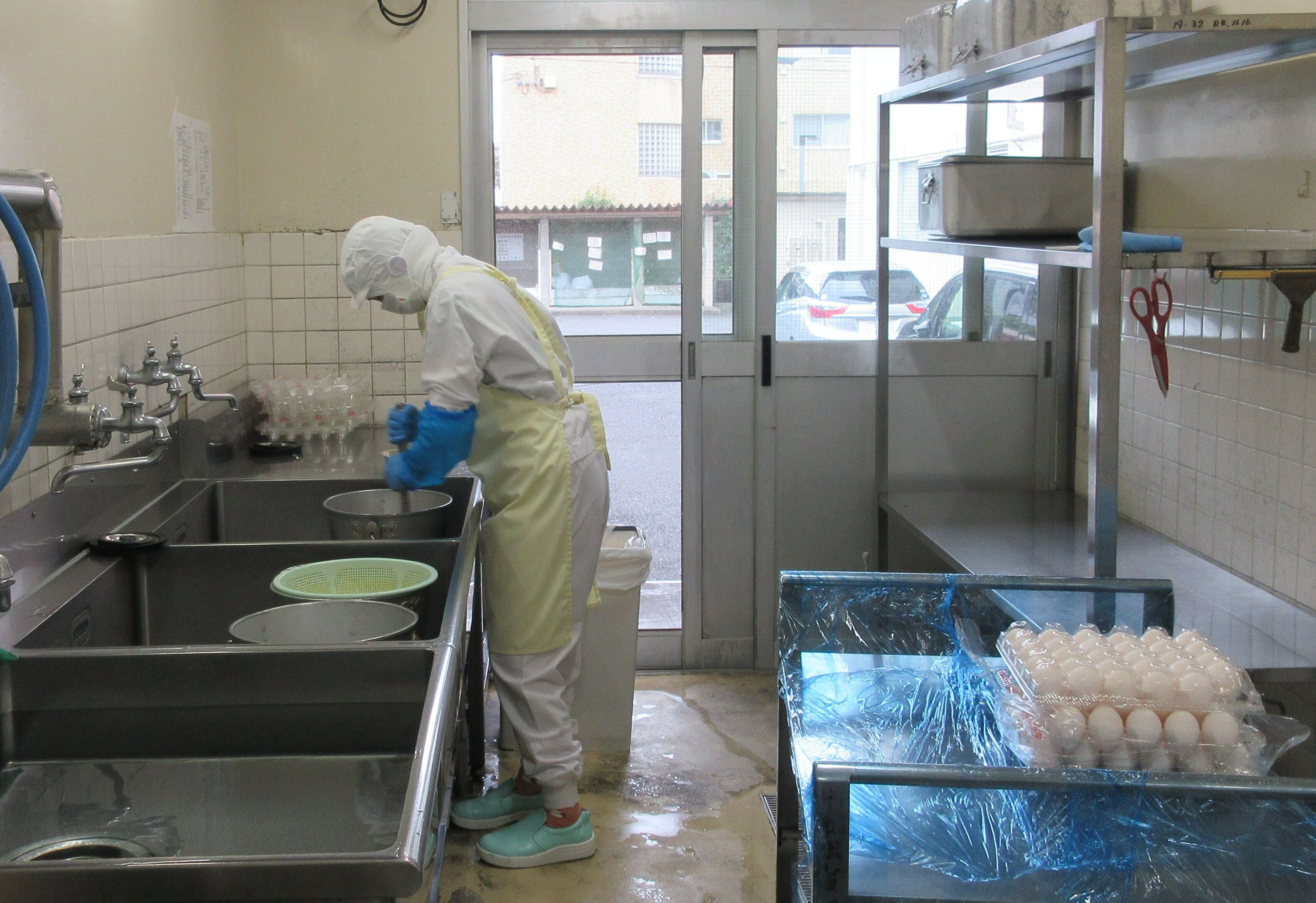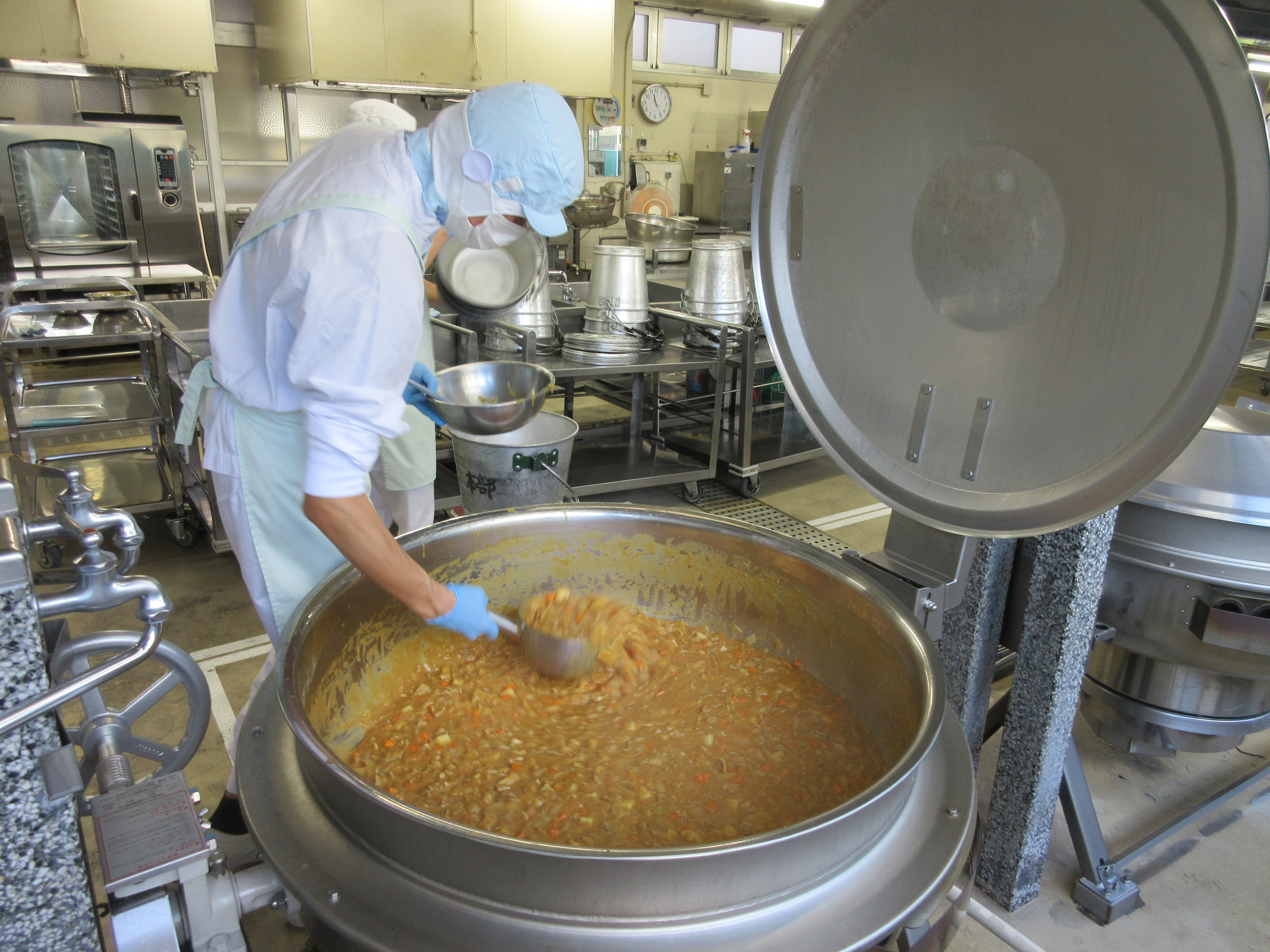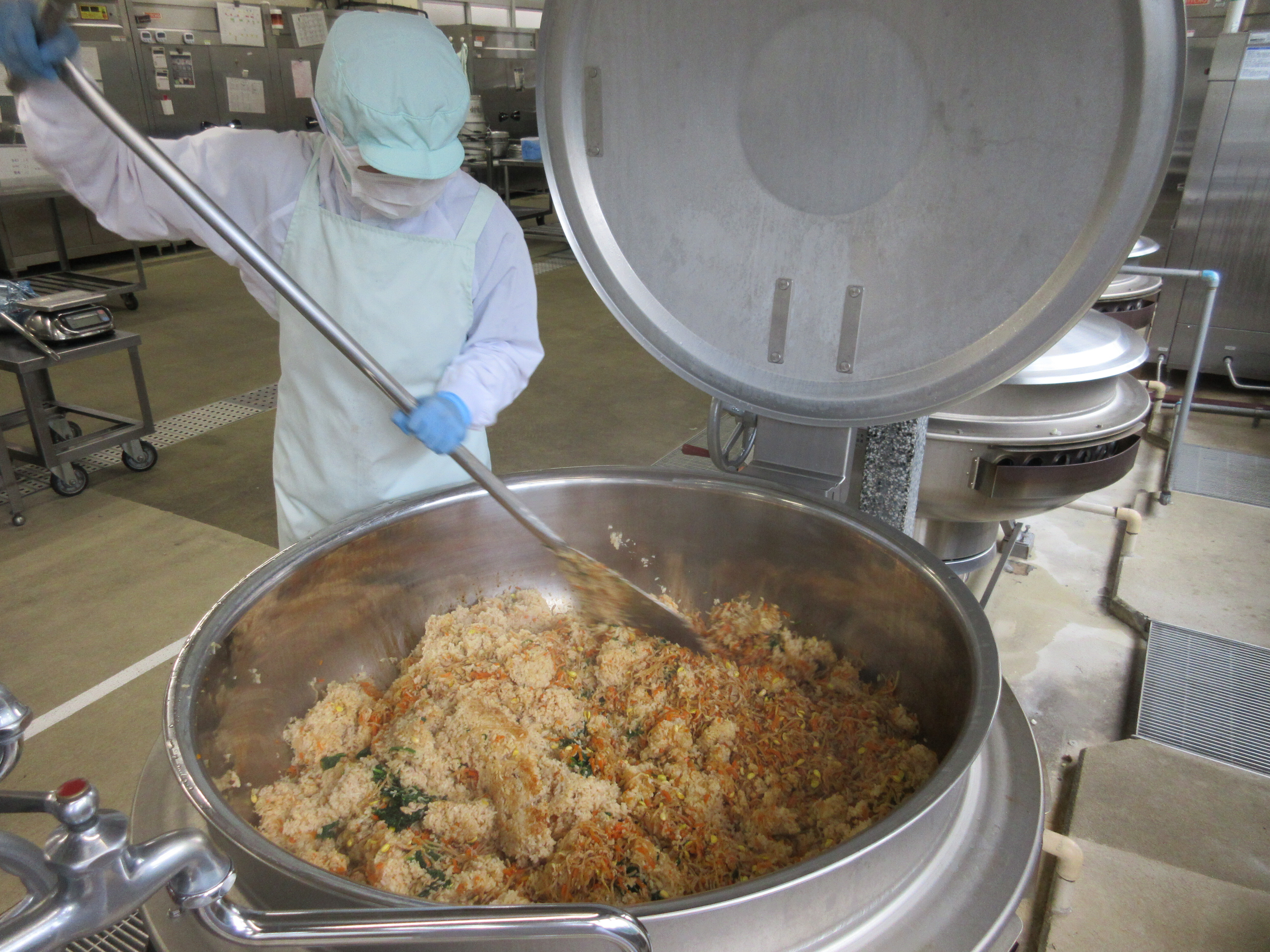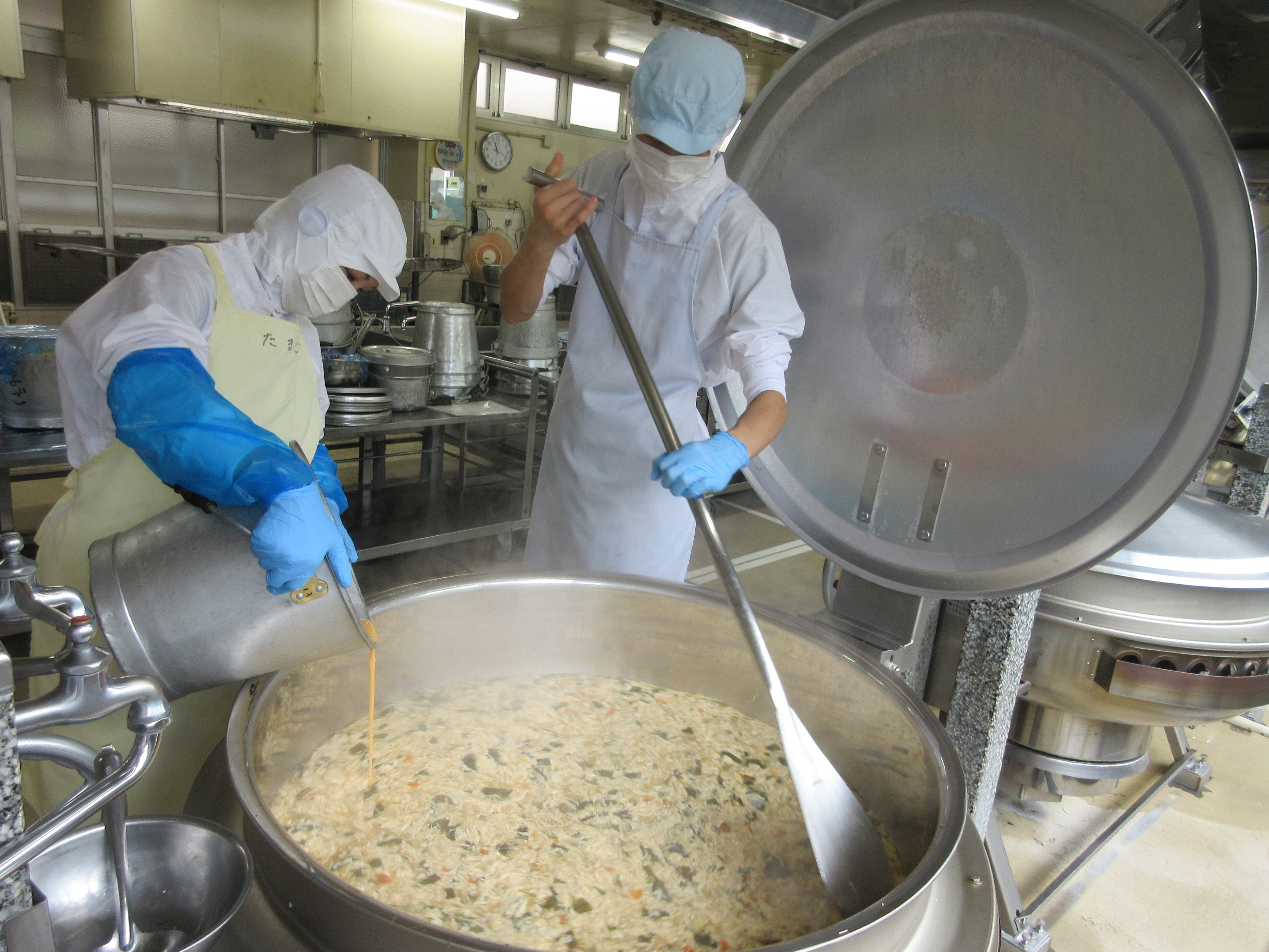 ↑卵は調理員さんお一人で約350個割ってくれました。ふわっと美味しい卵とじうどんの完成です。