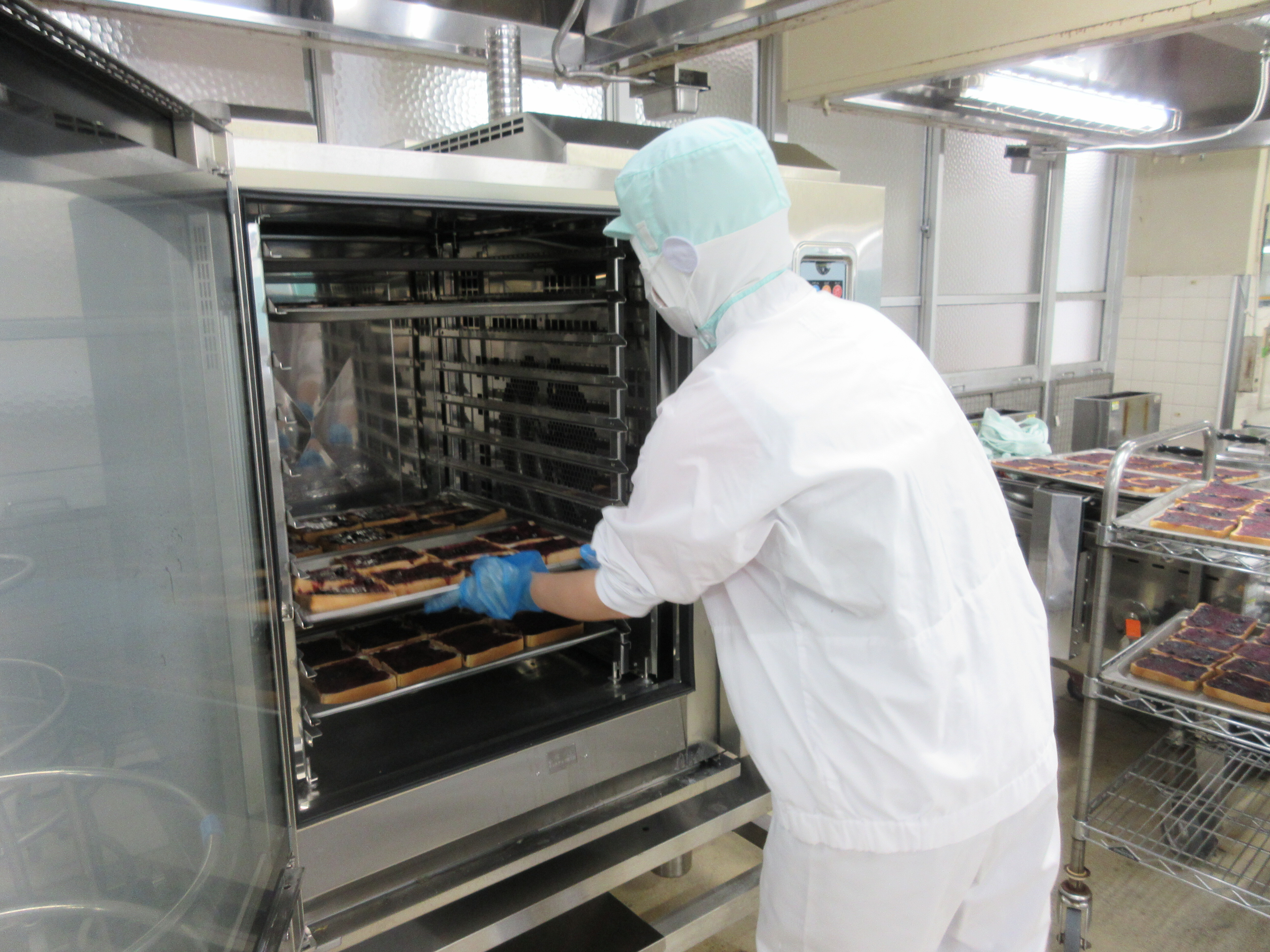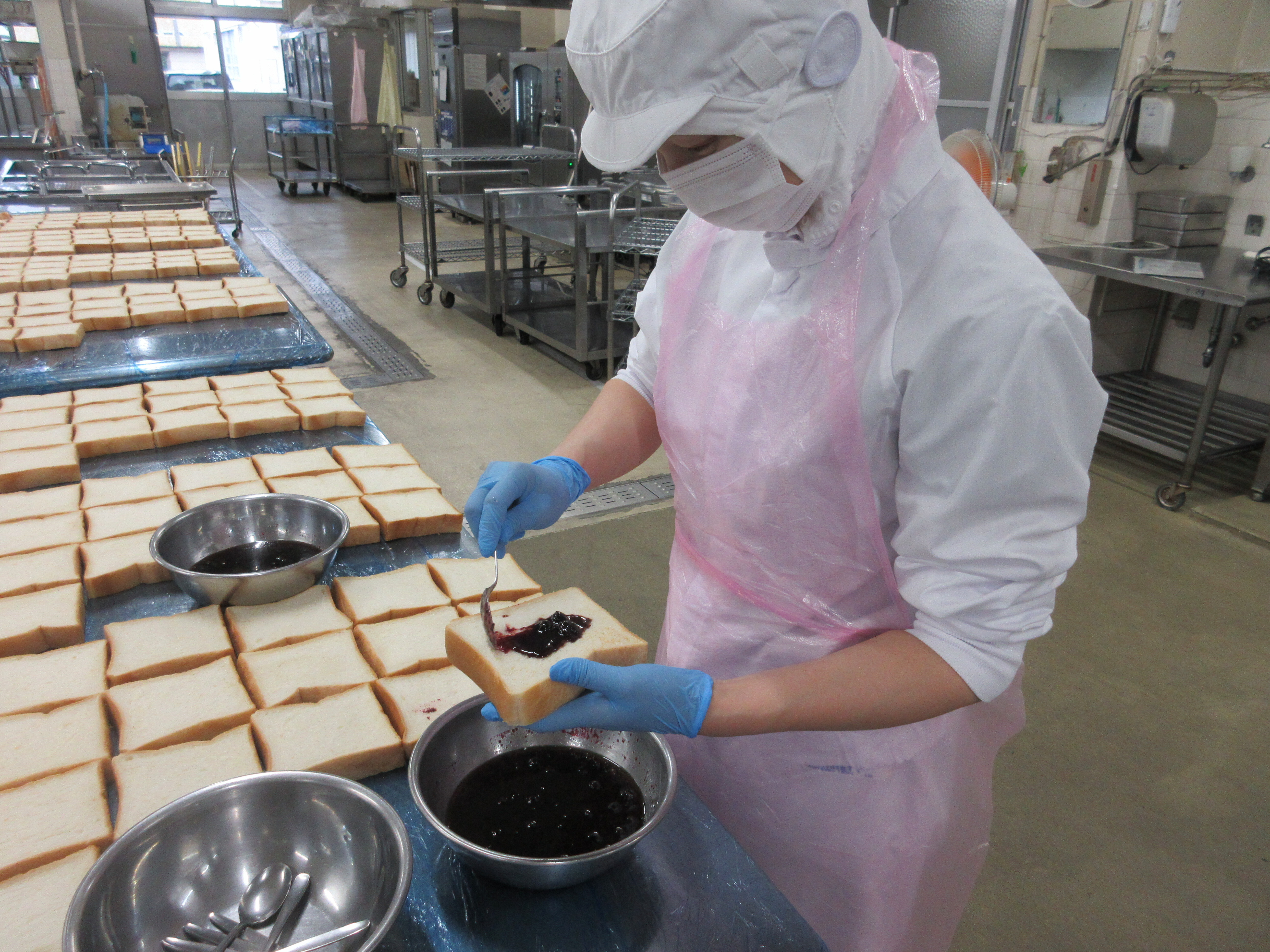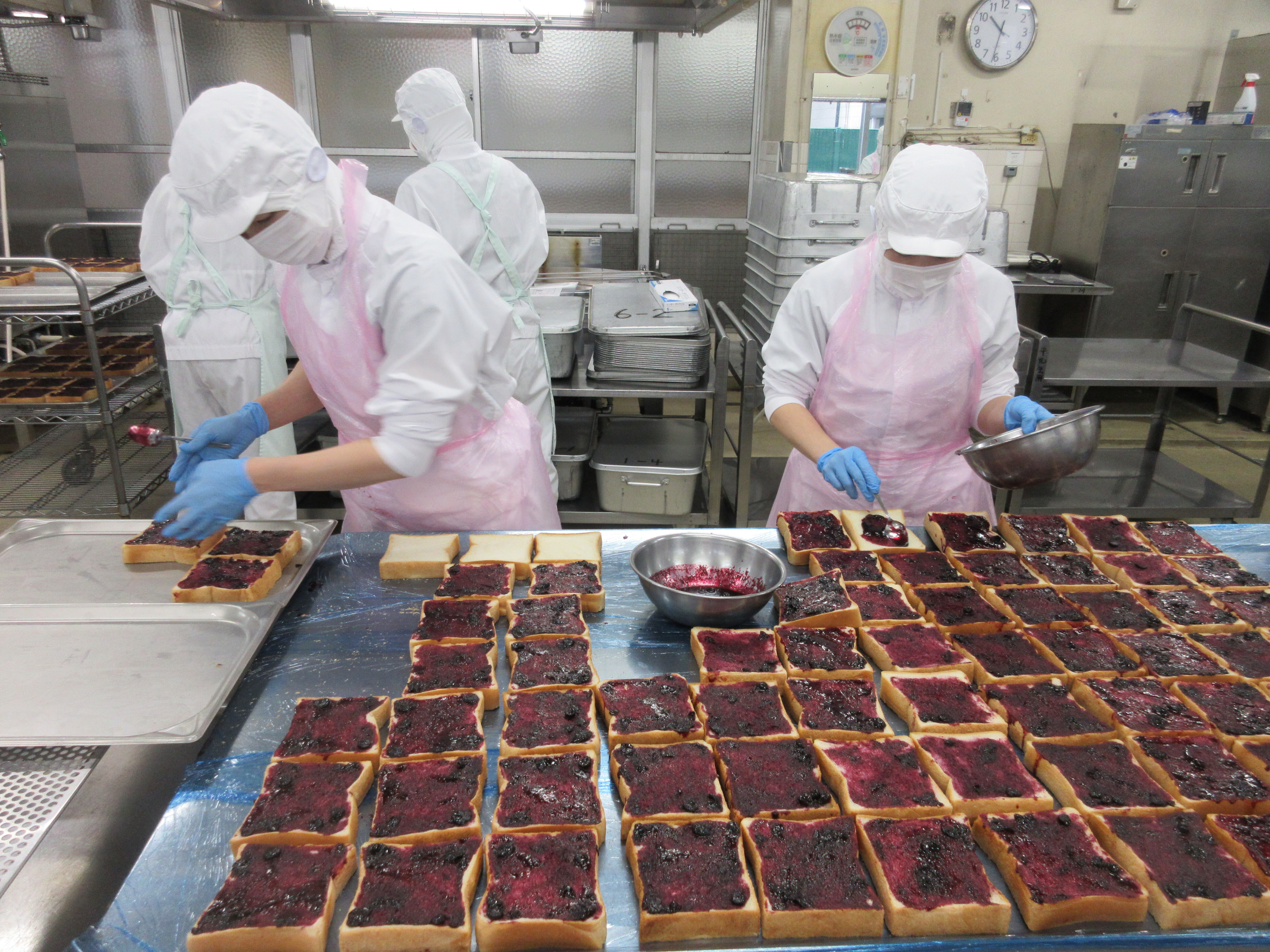 ↑全部で約800枚のブルーベリートーストを作りました。新メニューに子どもたちも喜んでくれました!