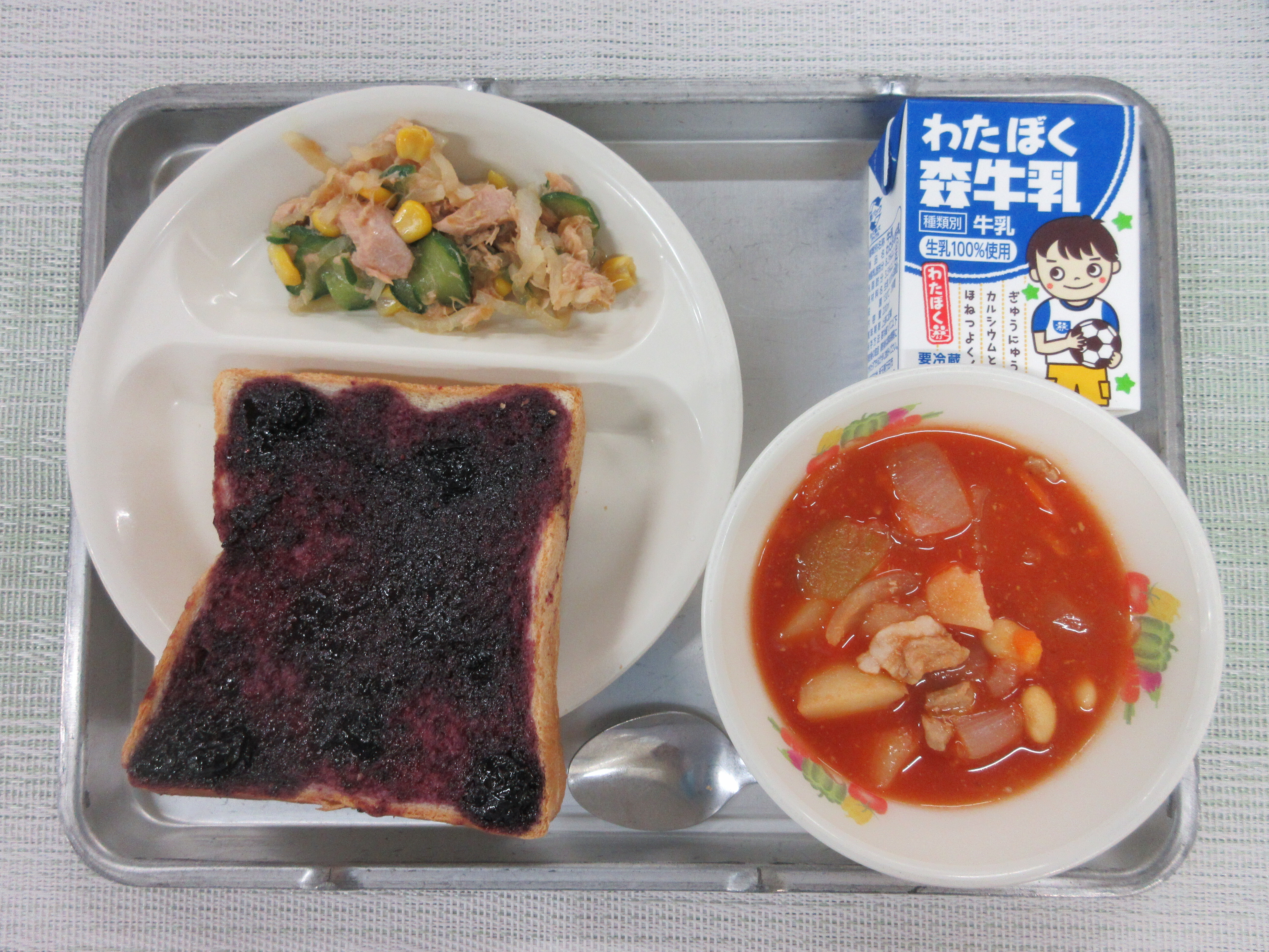 ↑埼玉県産のブルーベリーを使って調理員さんが美味しいジャムを作ってくれました。