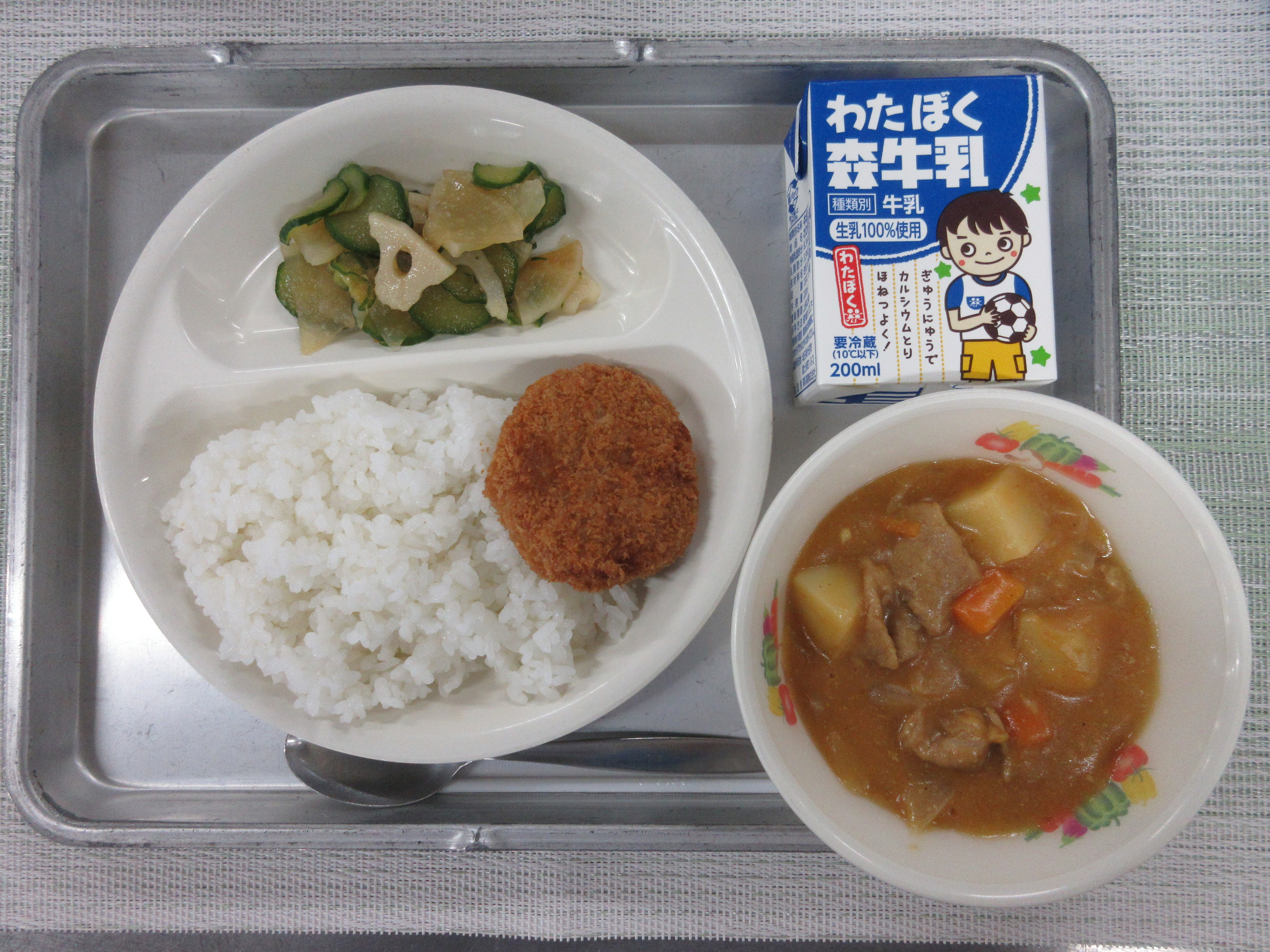 ↑明日の運動会で、みんなが全力を発揮できるようにカツカレーを調理員さんが作ってくれました!