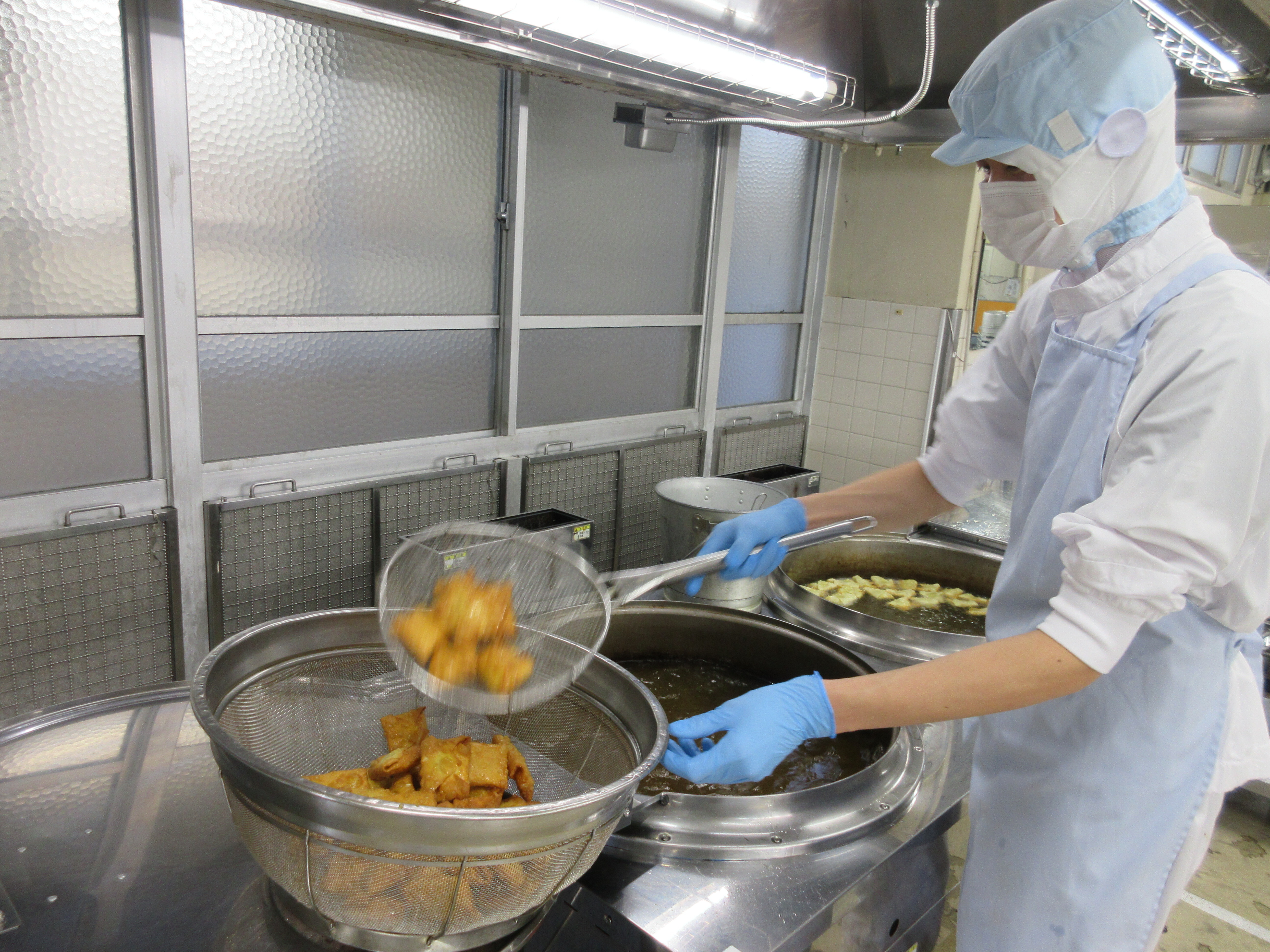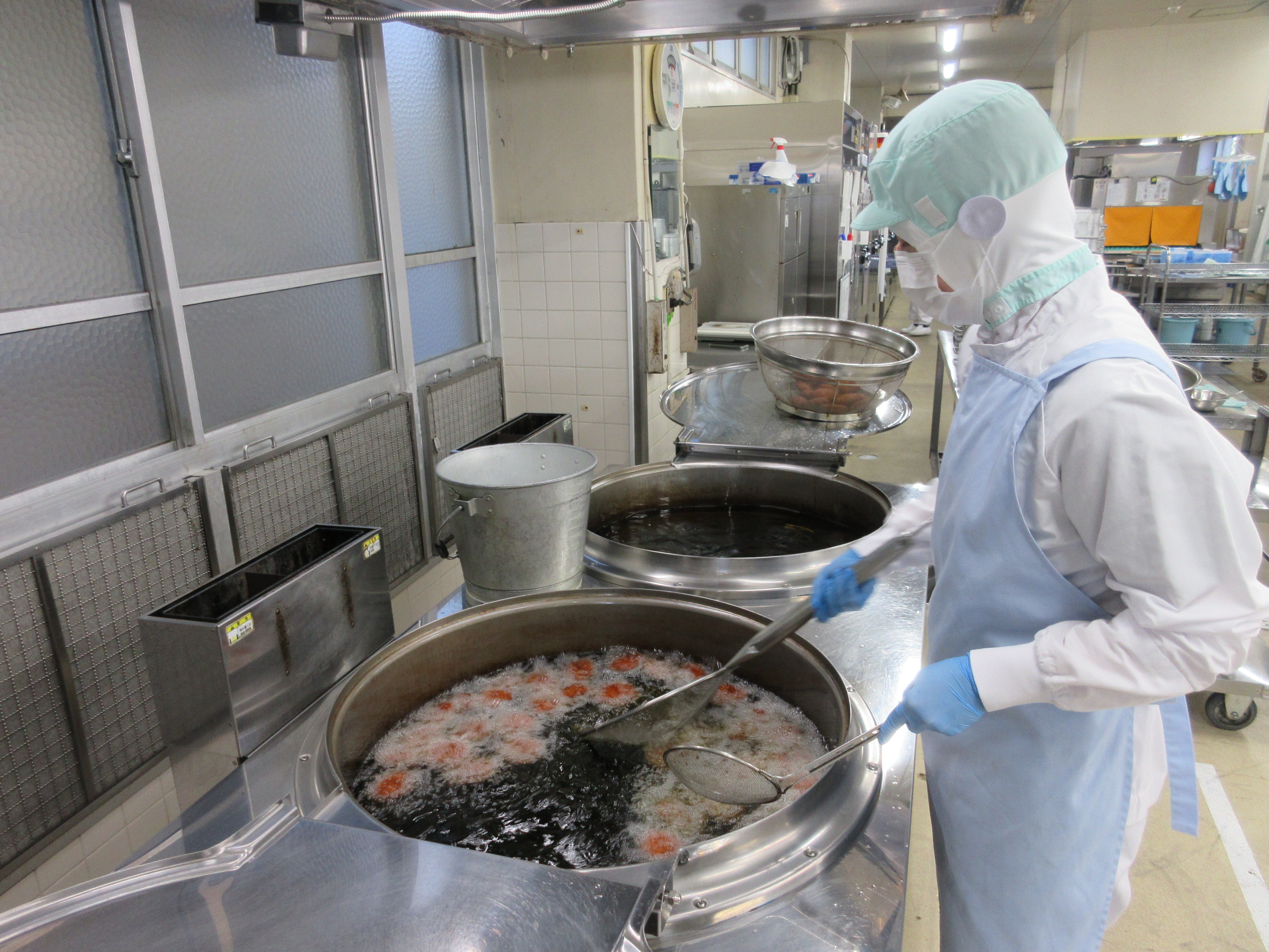 ↑埼玉県行田市の名物、ゼリーフライを調理員さんが一つ一つ作ってくれました!