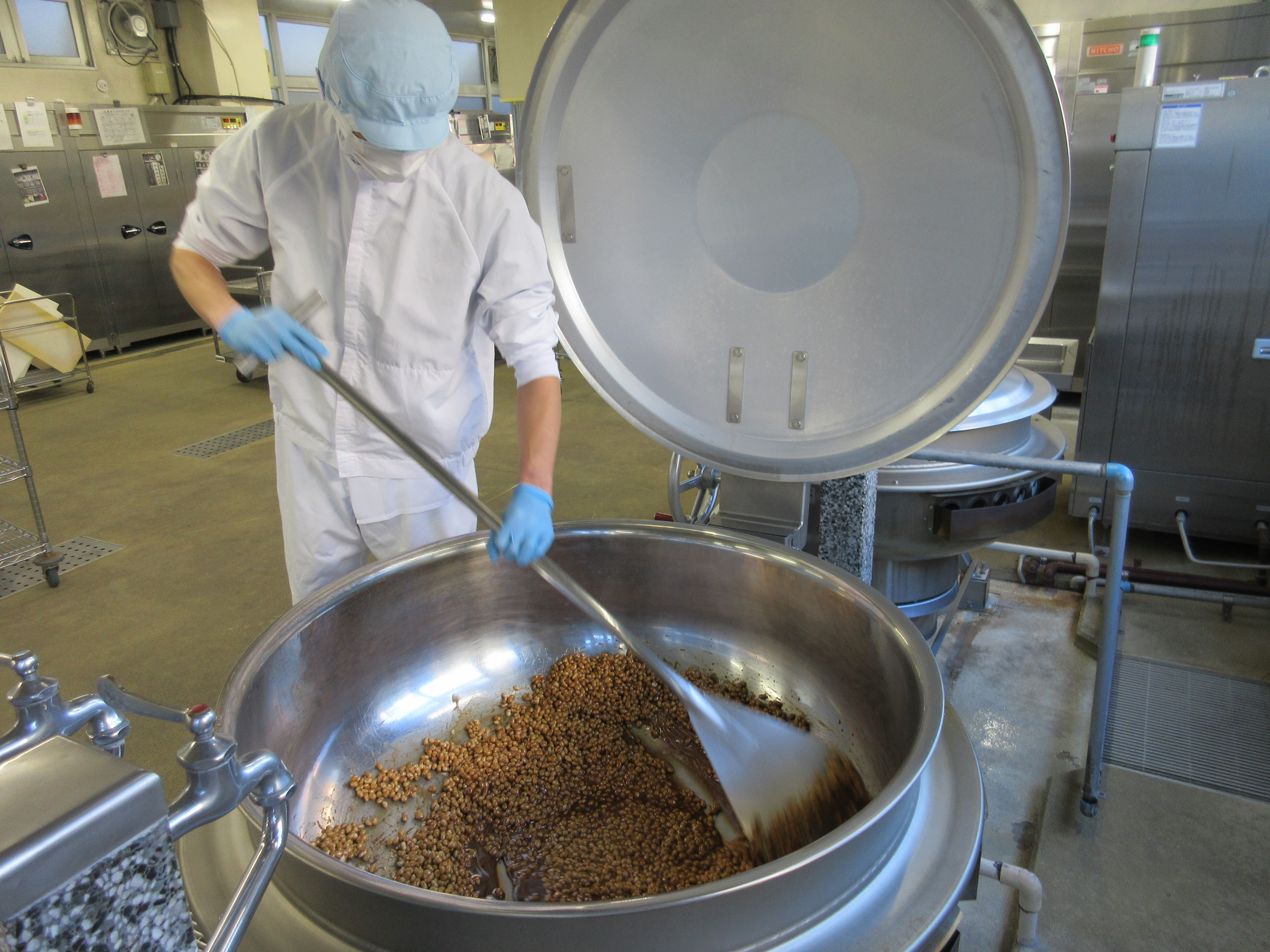 ↑大豆をオーブンで炒って黒砂糖と水を煮立たせた中に炒った大豆を入れてきな粉と塩を加えました。