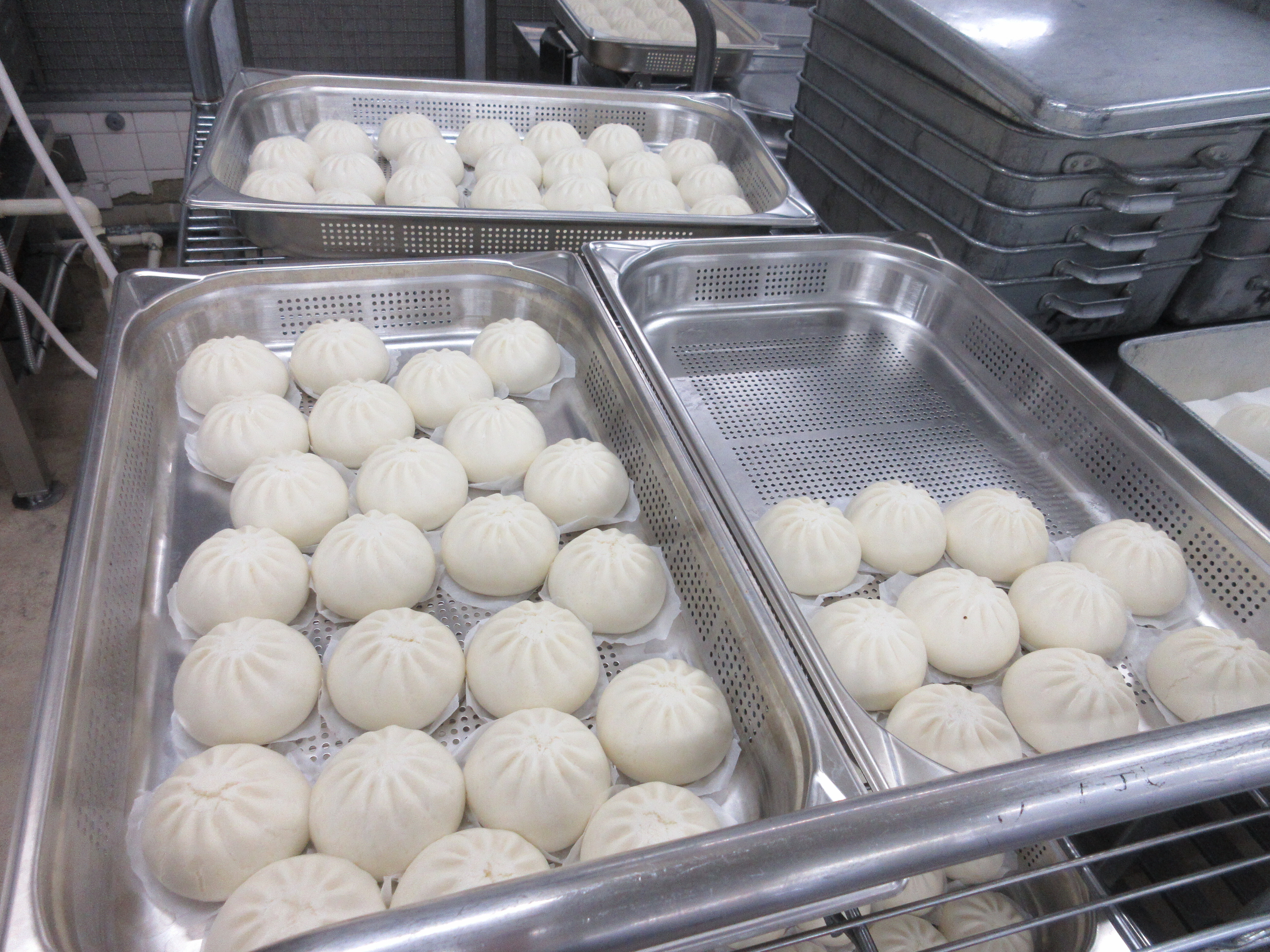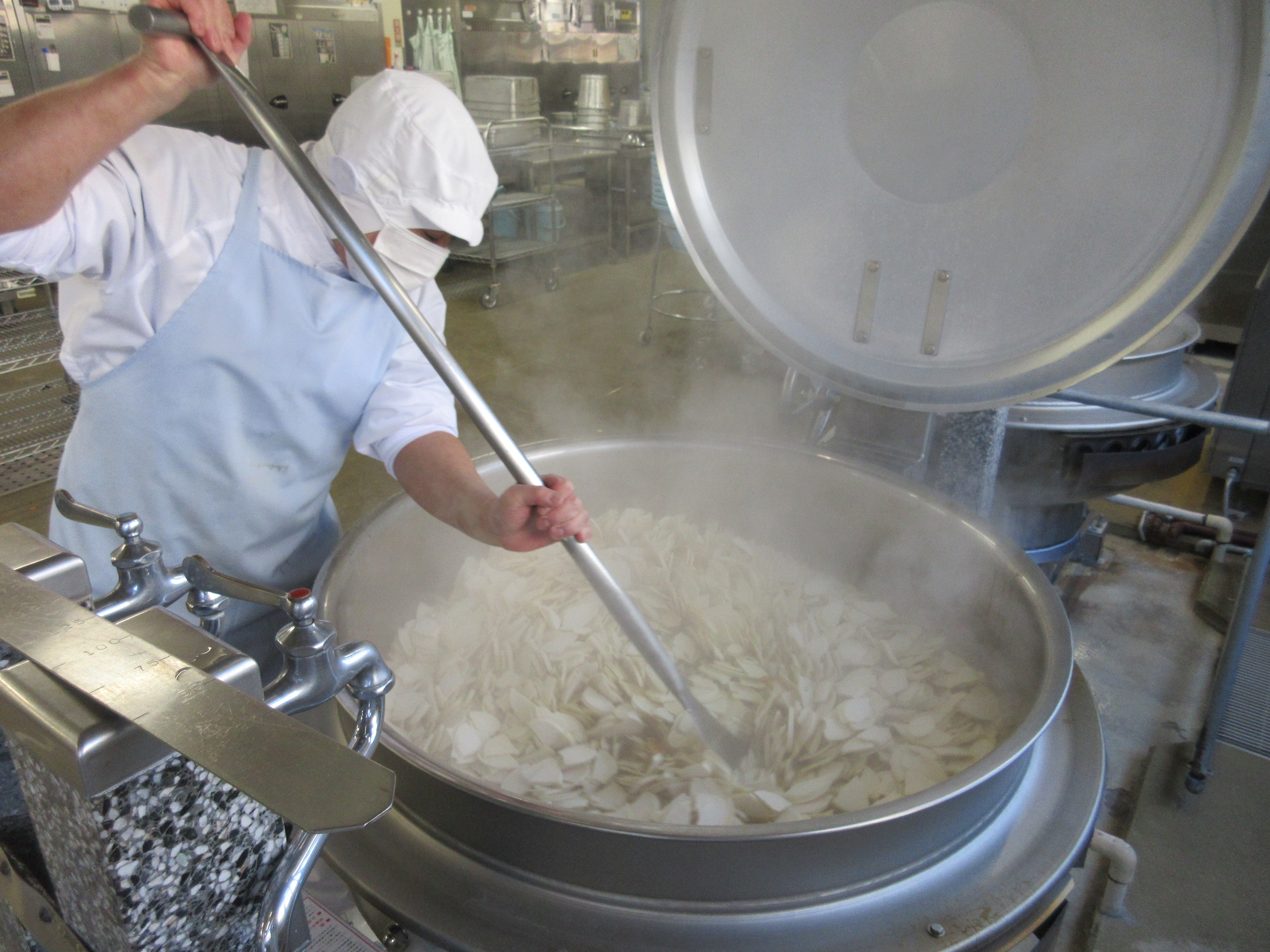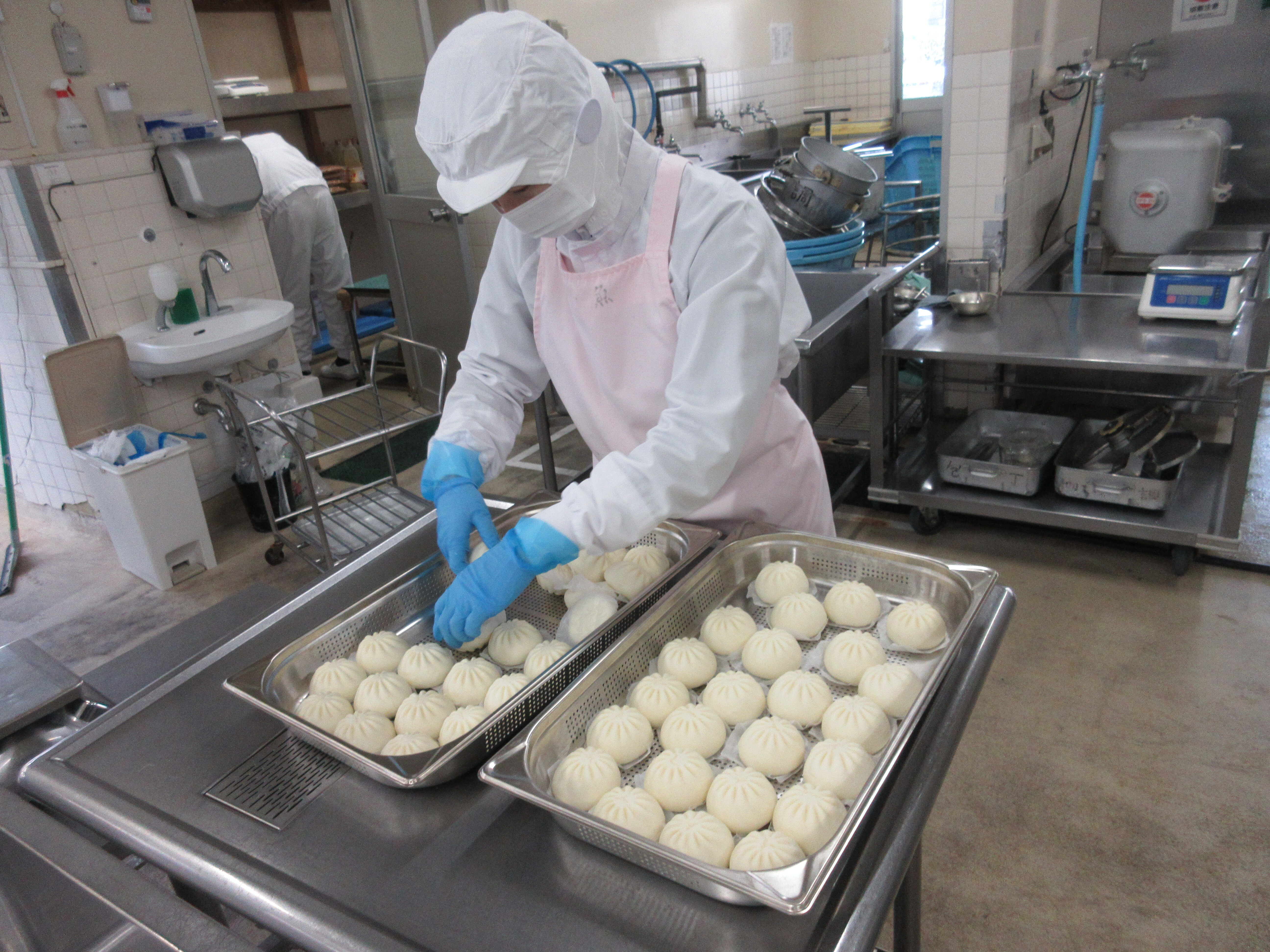 ↑約800個の肉まんを給食室のスチコンで美味しく蒸してくれました。