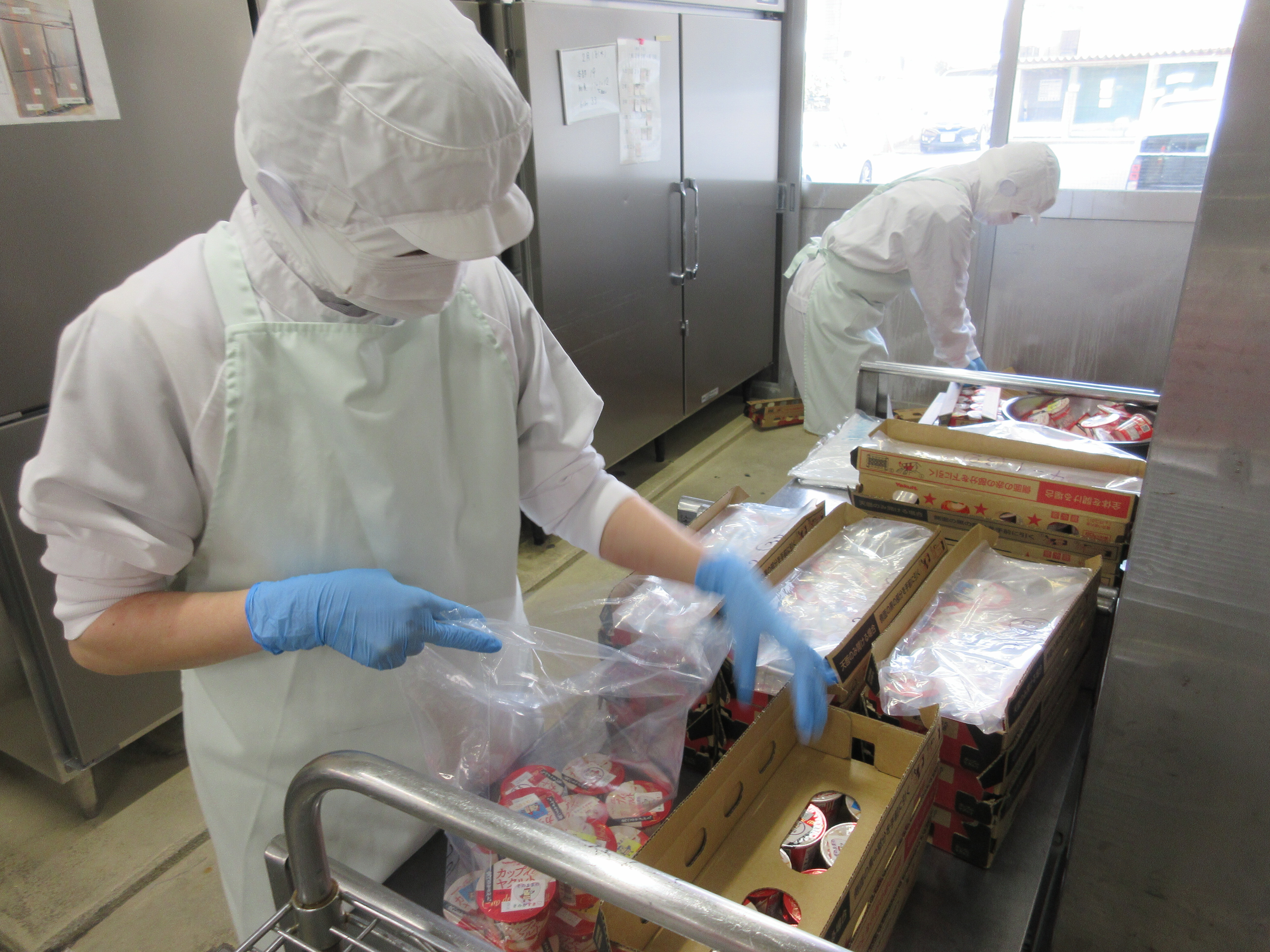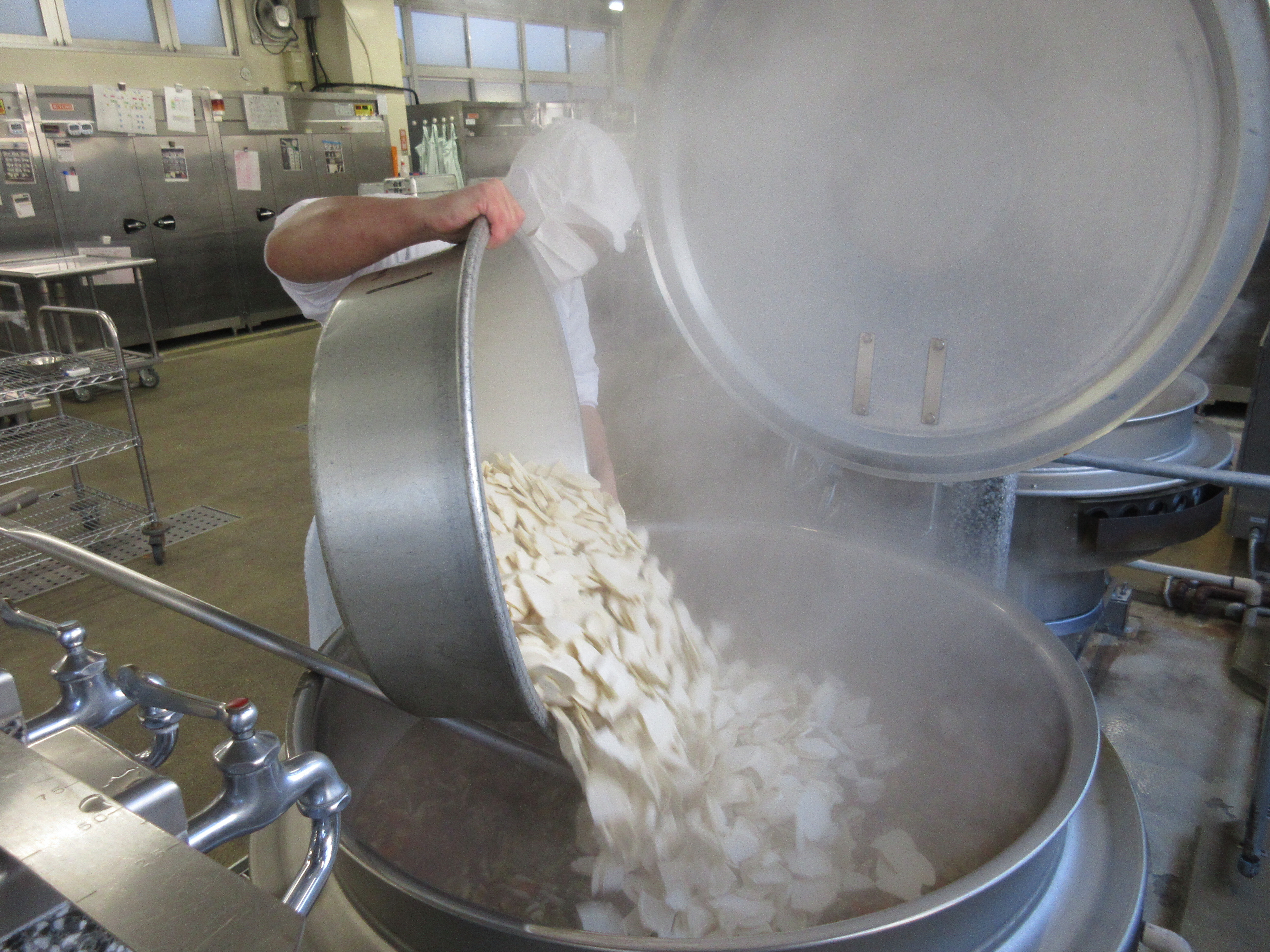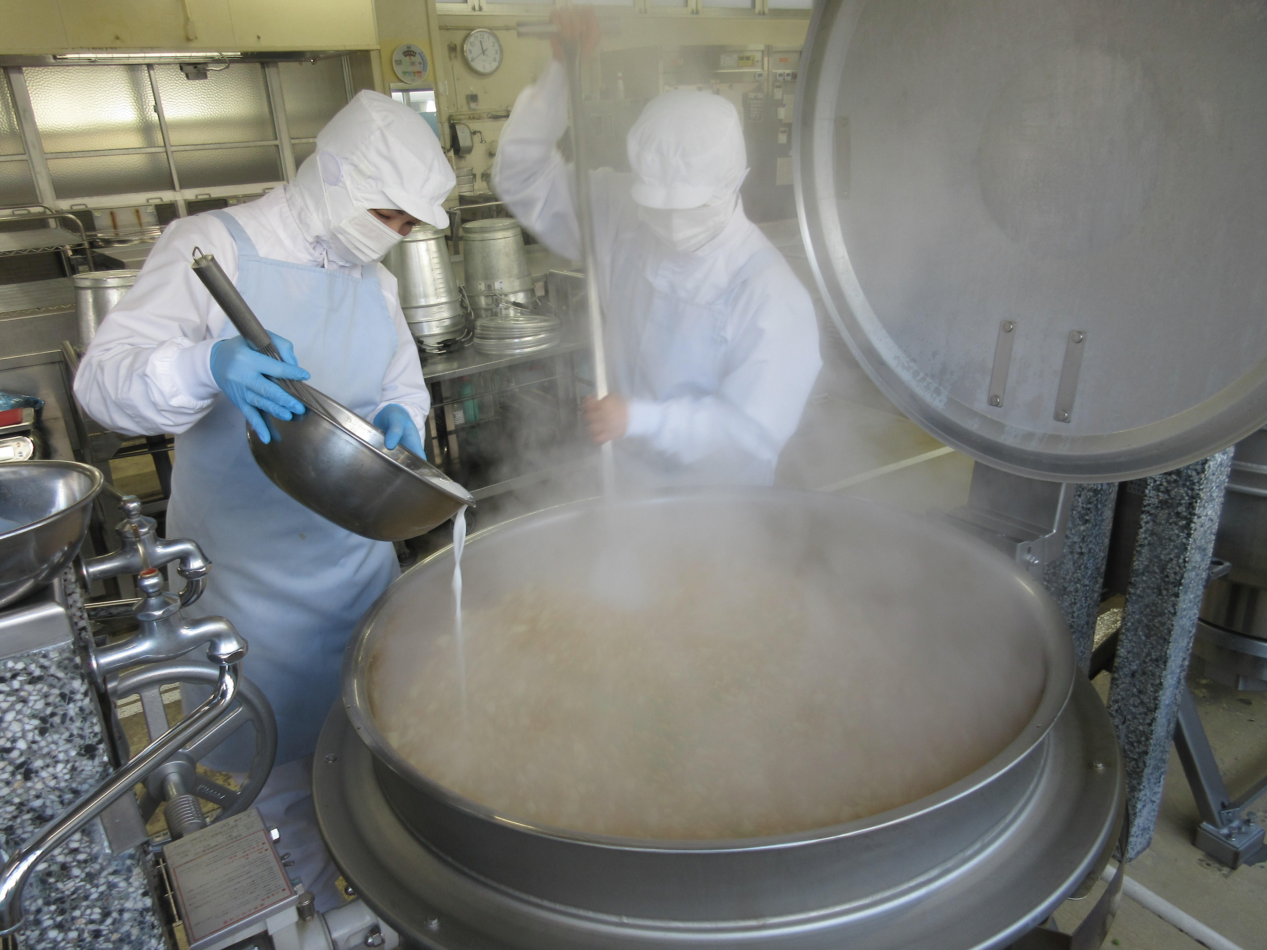 ↑約800個の肉まんを給食室のスチコンで美味しく蒸してくれました。