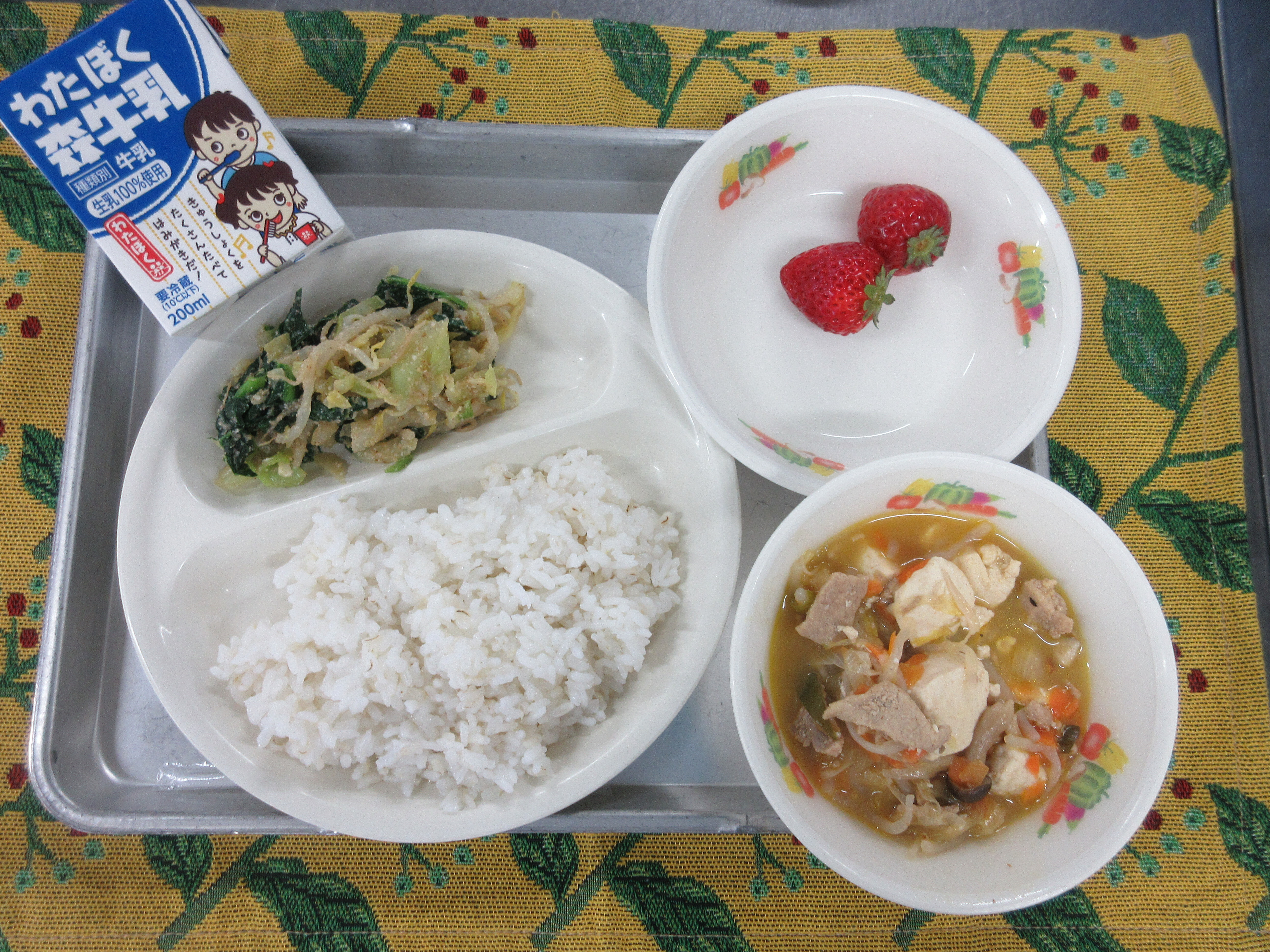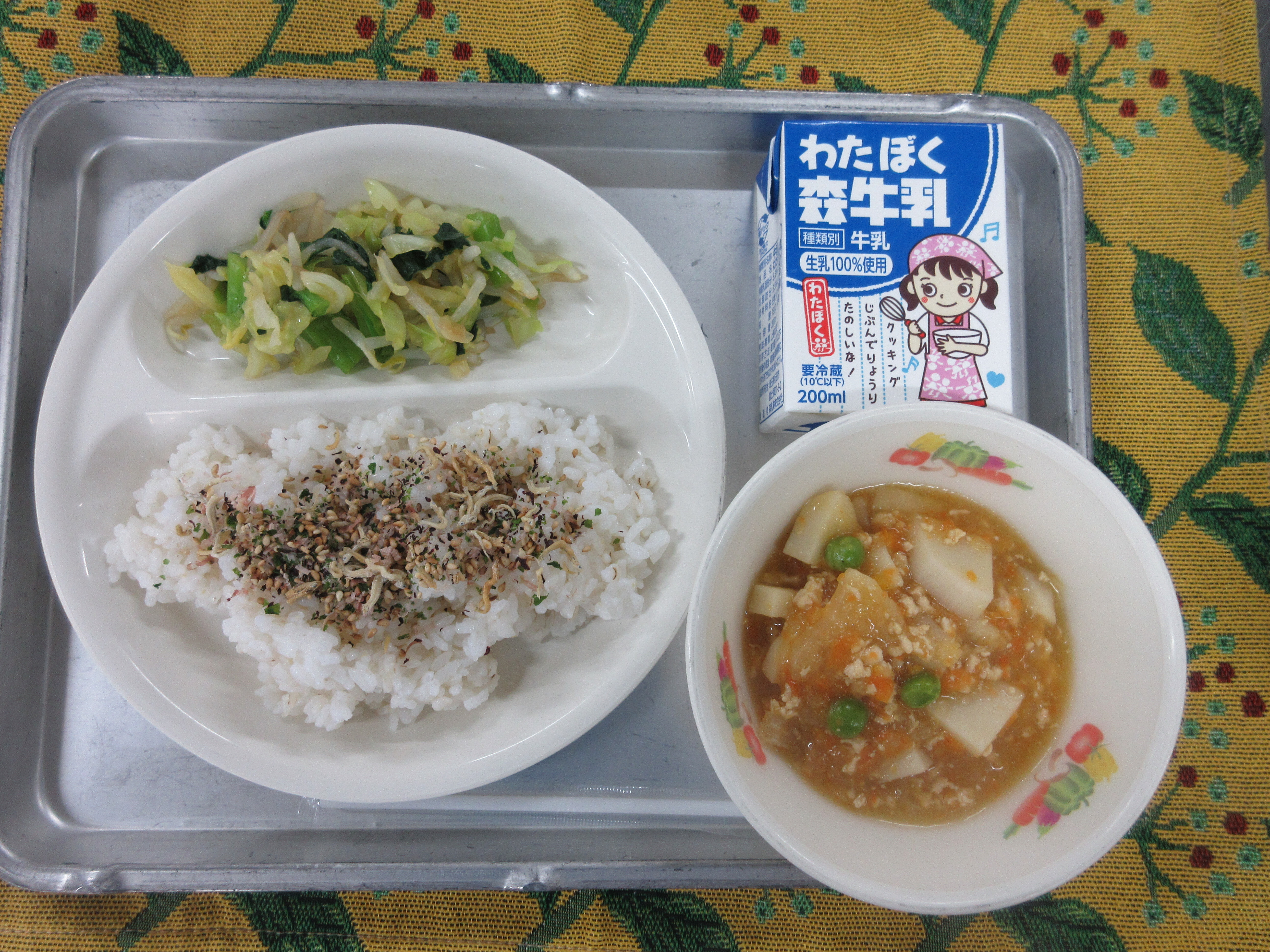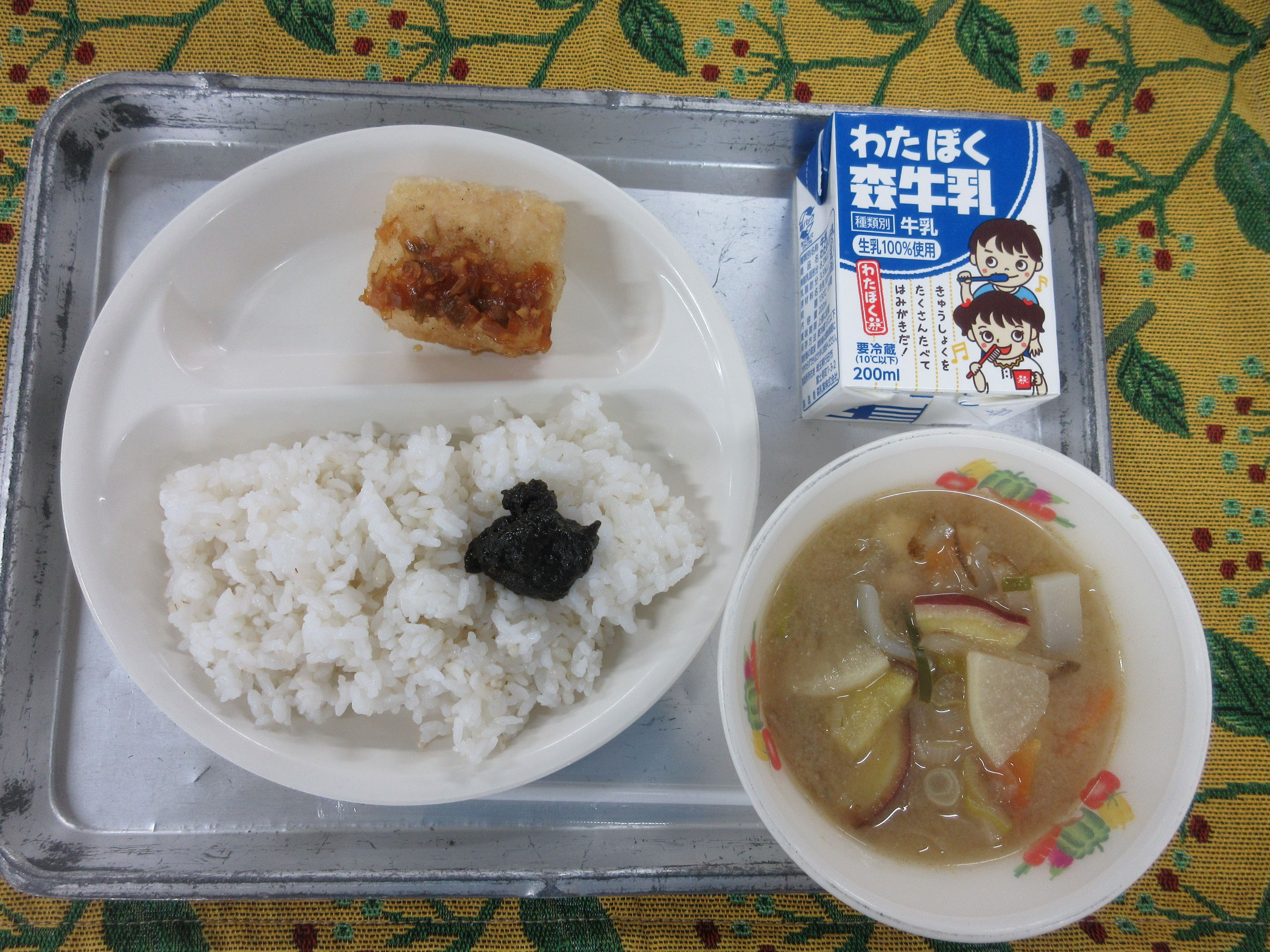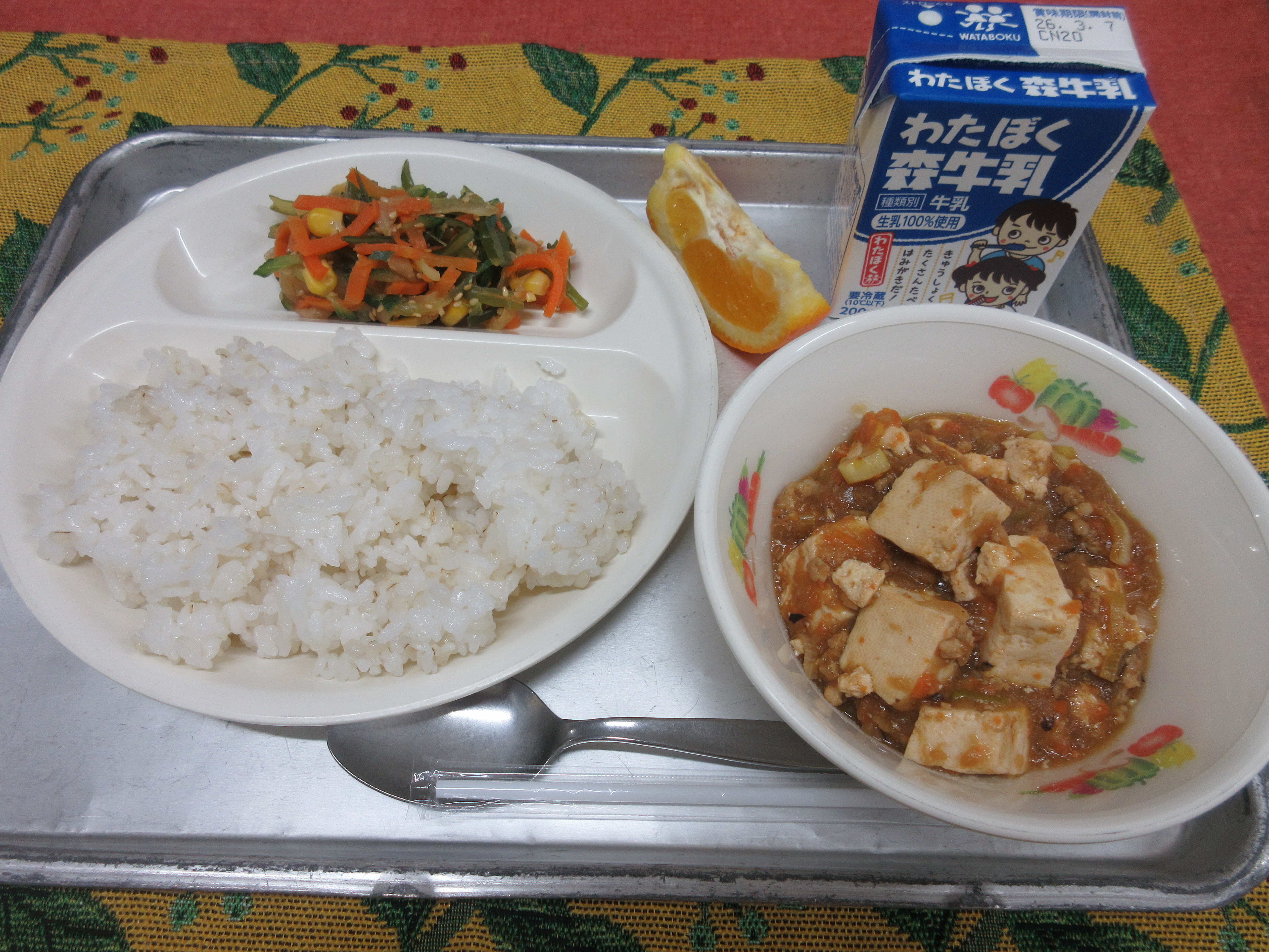 ↑今日の果物は今が旬の伊予柑です。愛媛県産の甘くて美味しい伊予柑を届けて下さいました。ごはんも果物も、完食のクラスが多かったです。