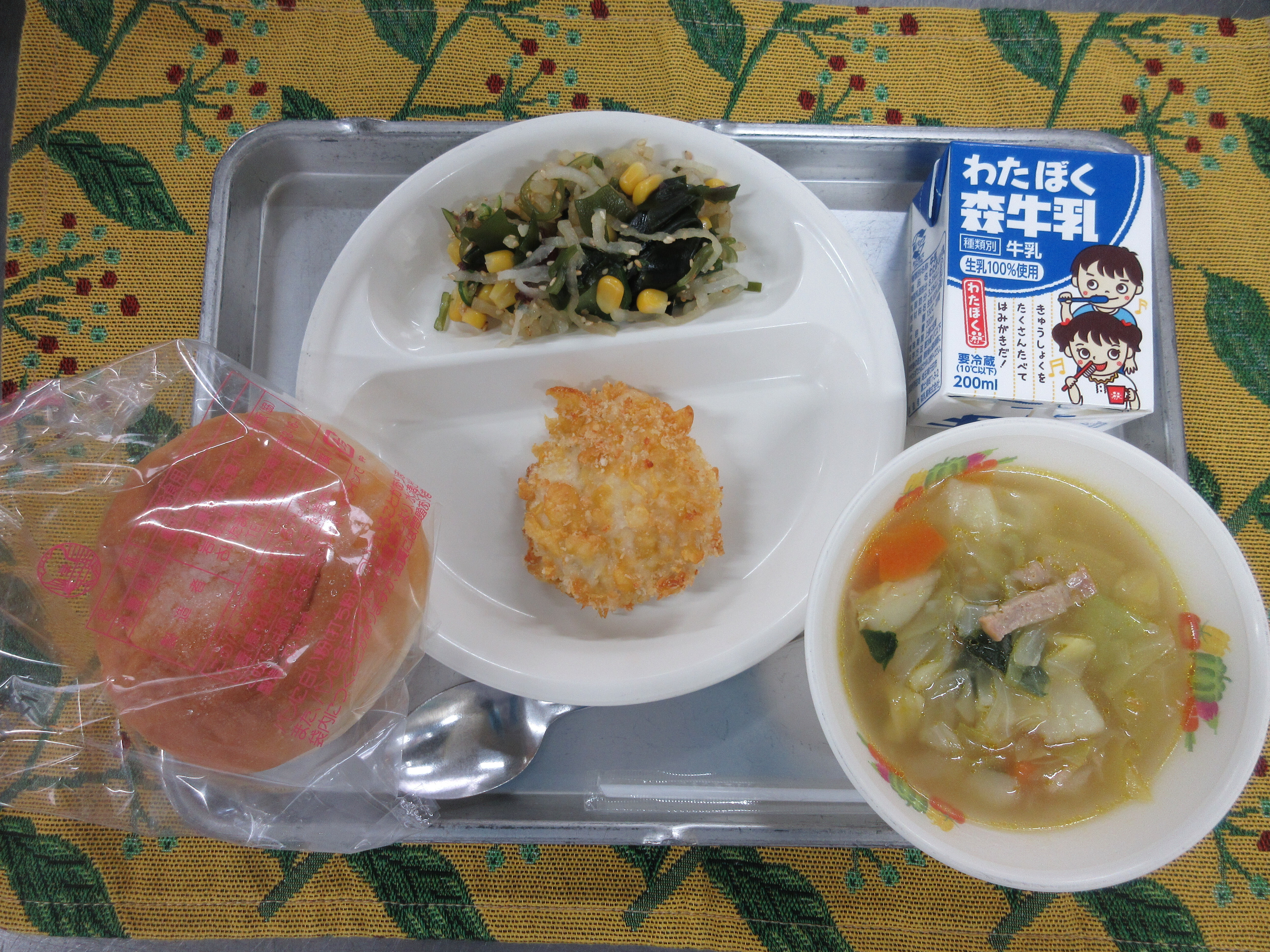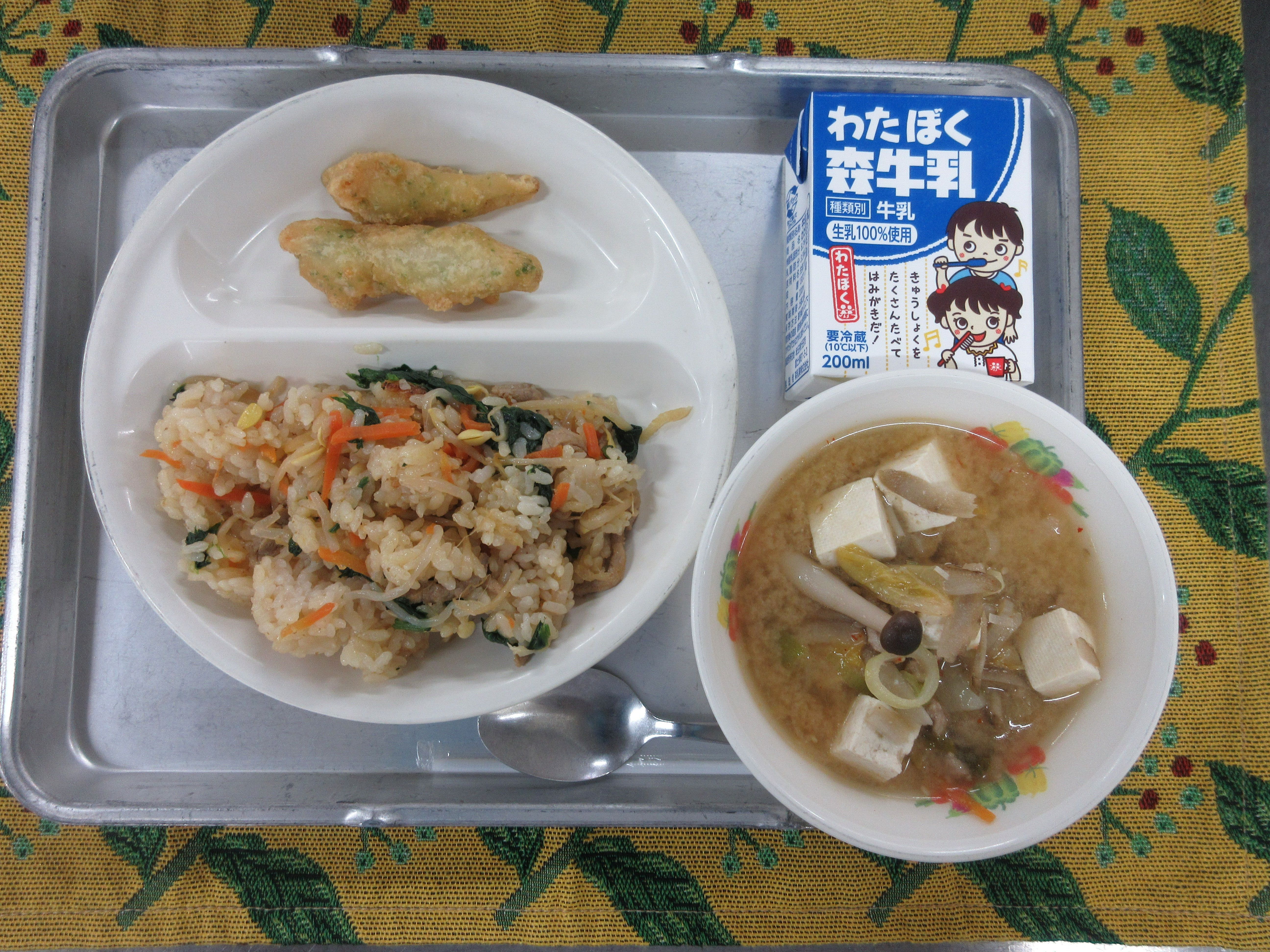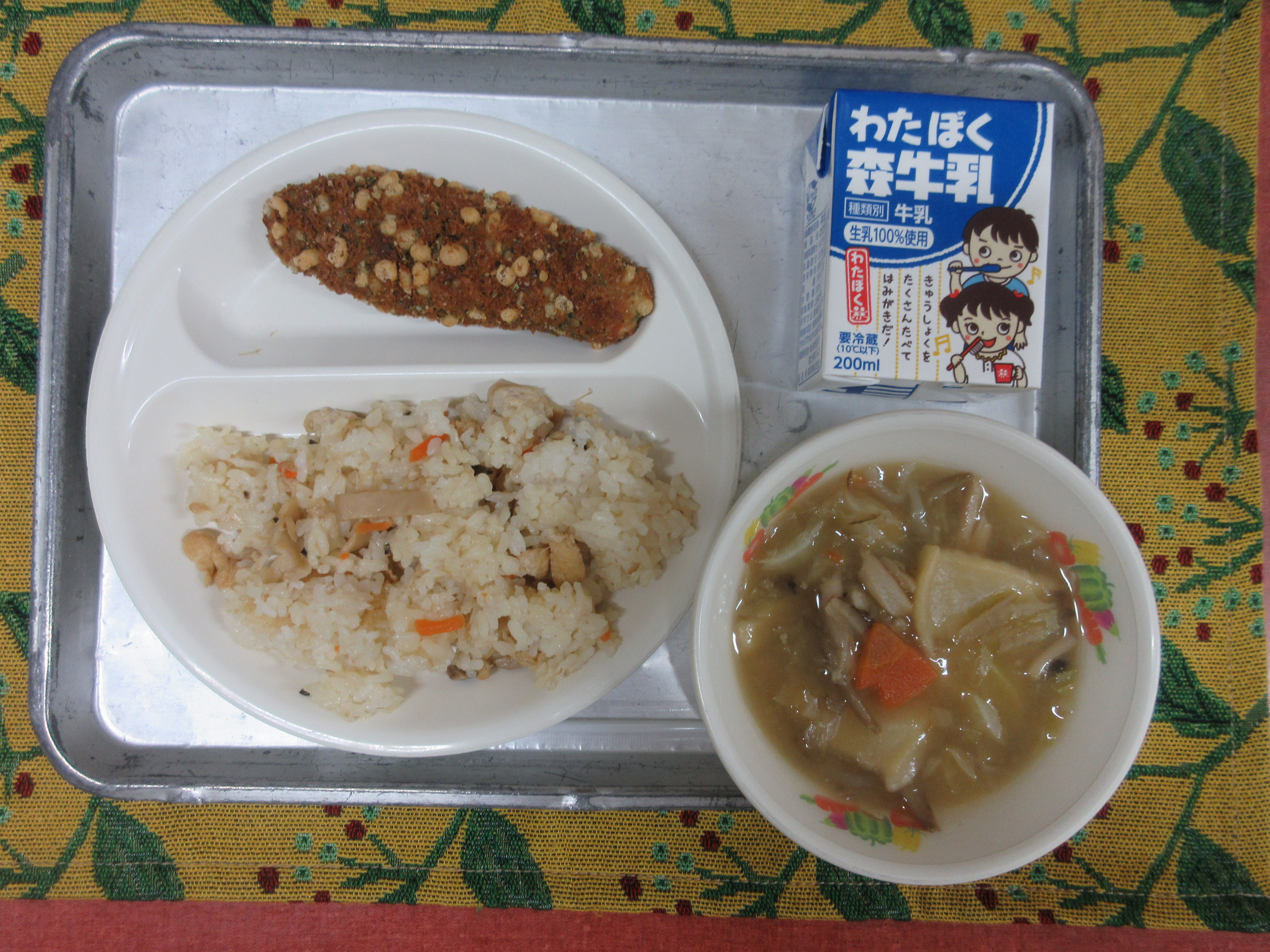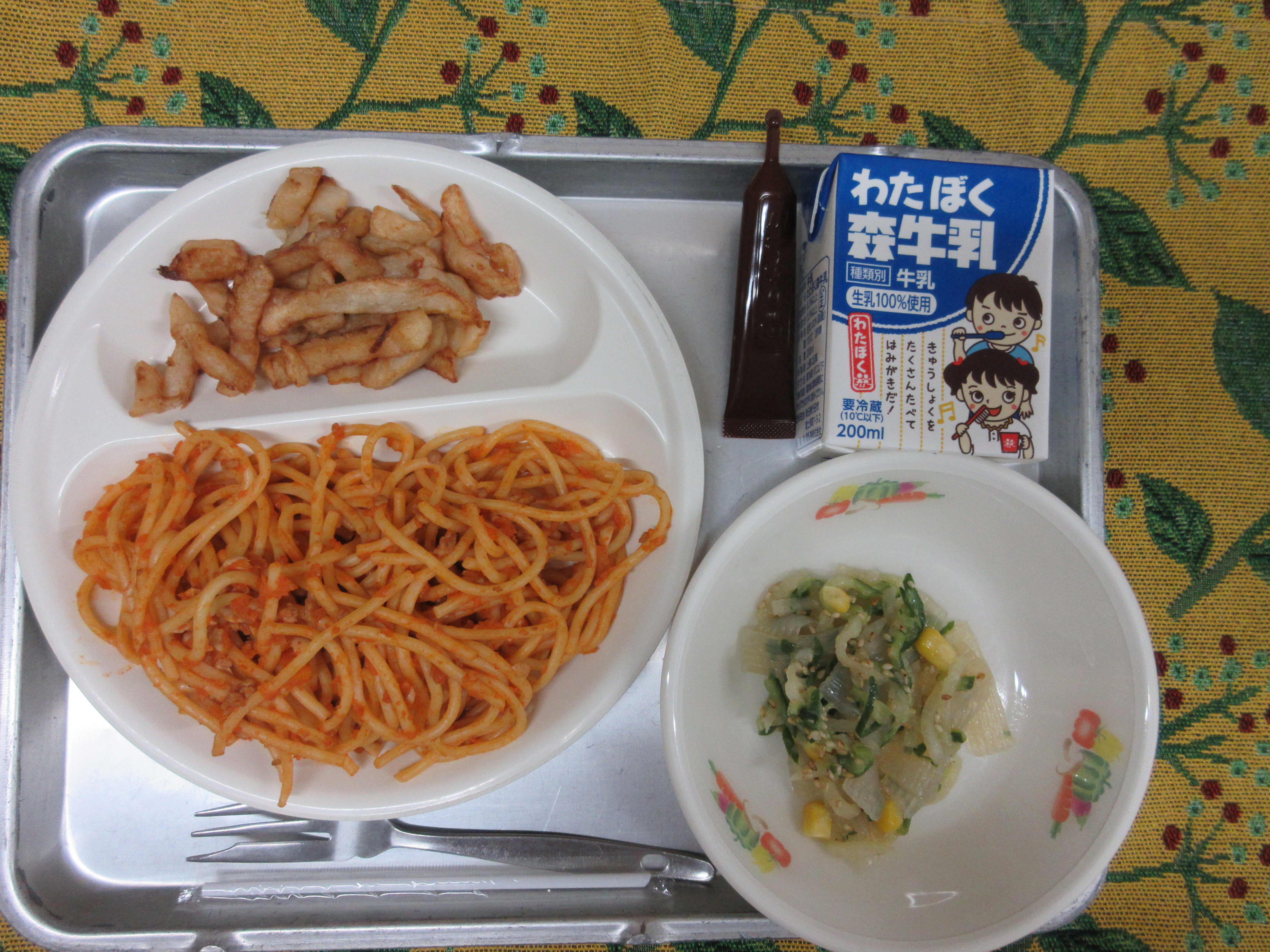 ↑今日の果物は今が旬の伊予柑です。愛媛県産の甘くて美味しい伊予柑を届けて下さいました。ごはんも果物も、完食のクラスが多かったです。