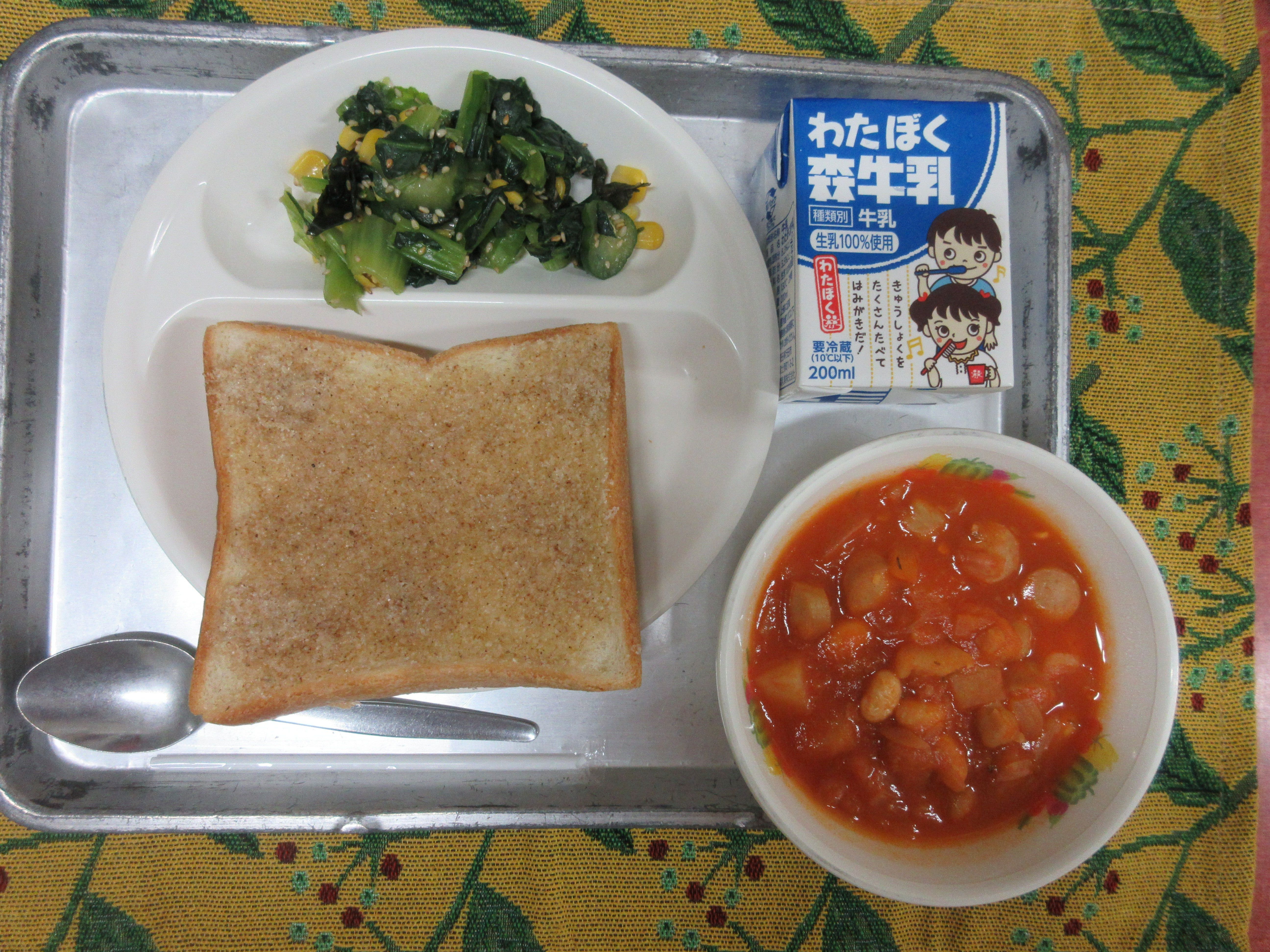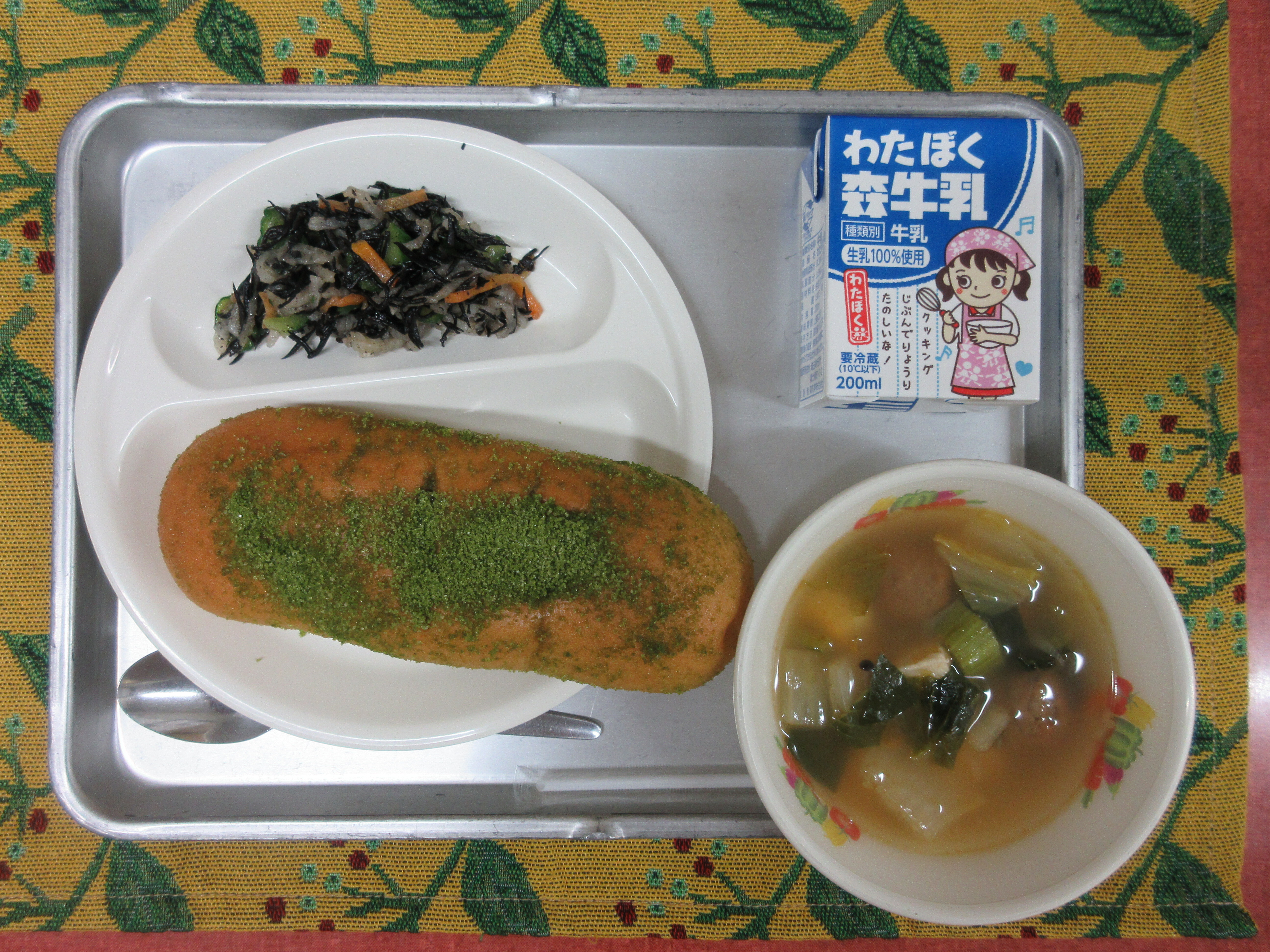 ↑1年生は初めての抹茶揚げパンでした。始めは苦手と話していた児童も「美味しい!」と完食してくれました。