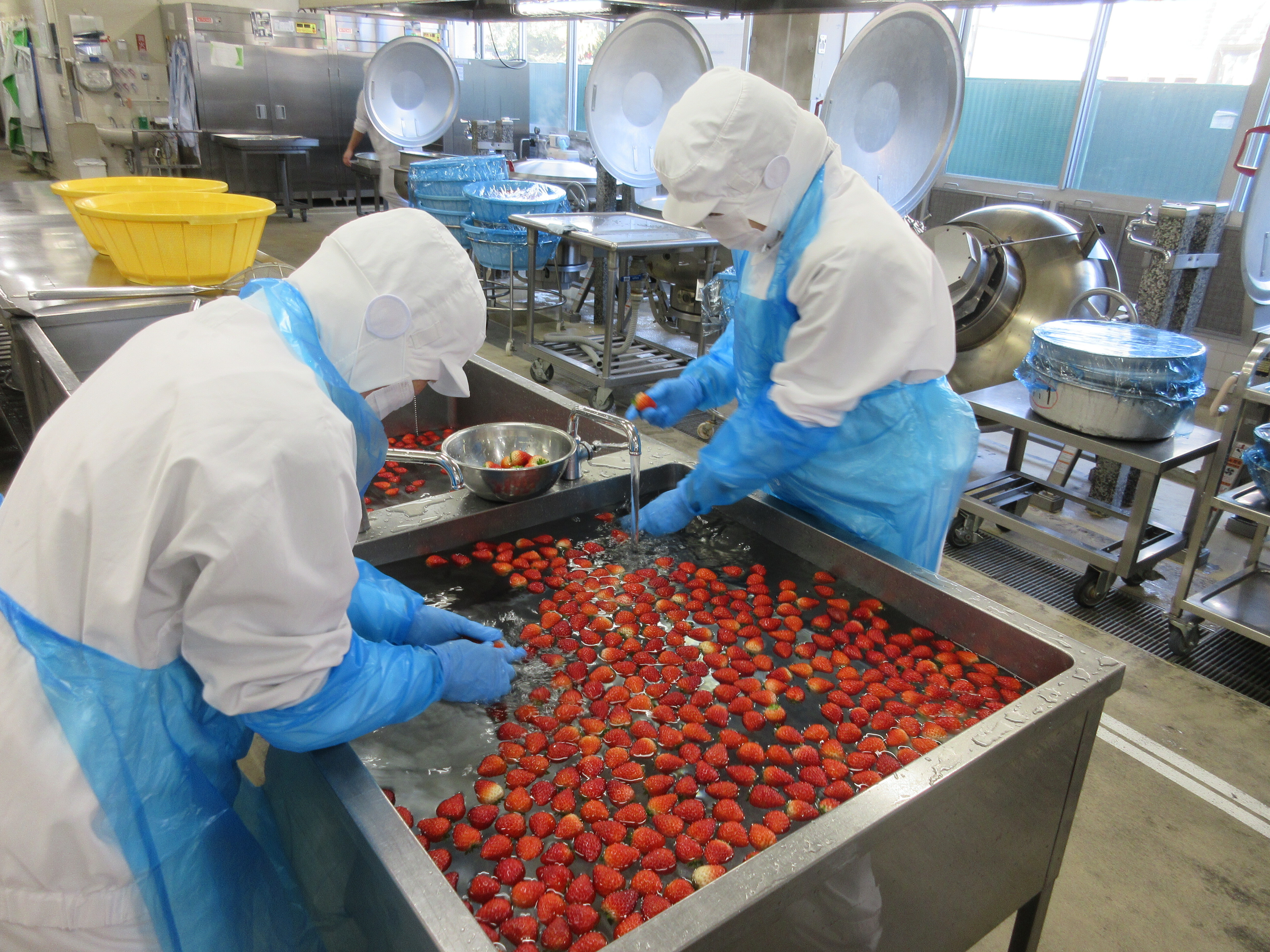 ↑栃木県産の美味しい「とちあいか」が届きました!調理員さんが一つ一つ丁寧に洗ってくれました!
