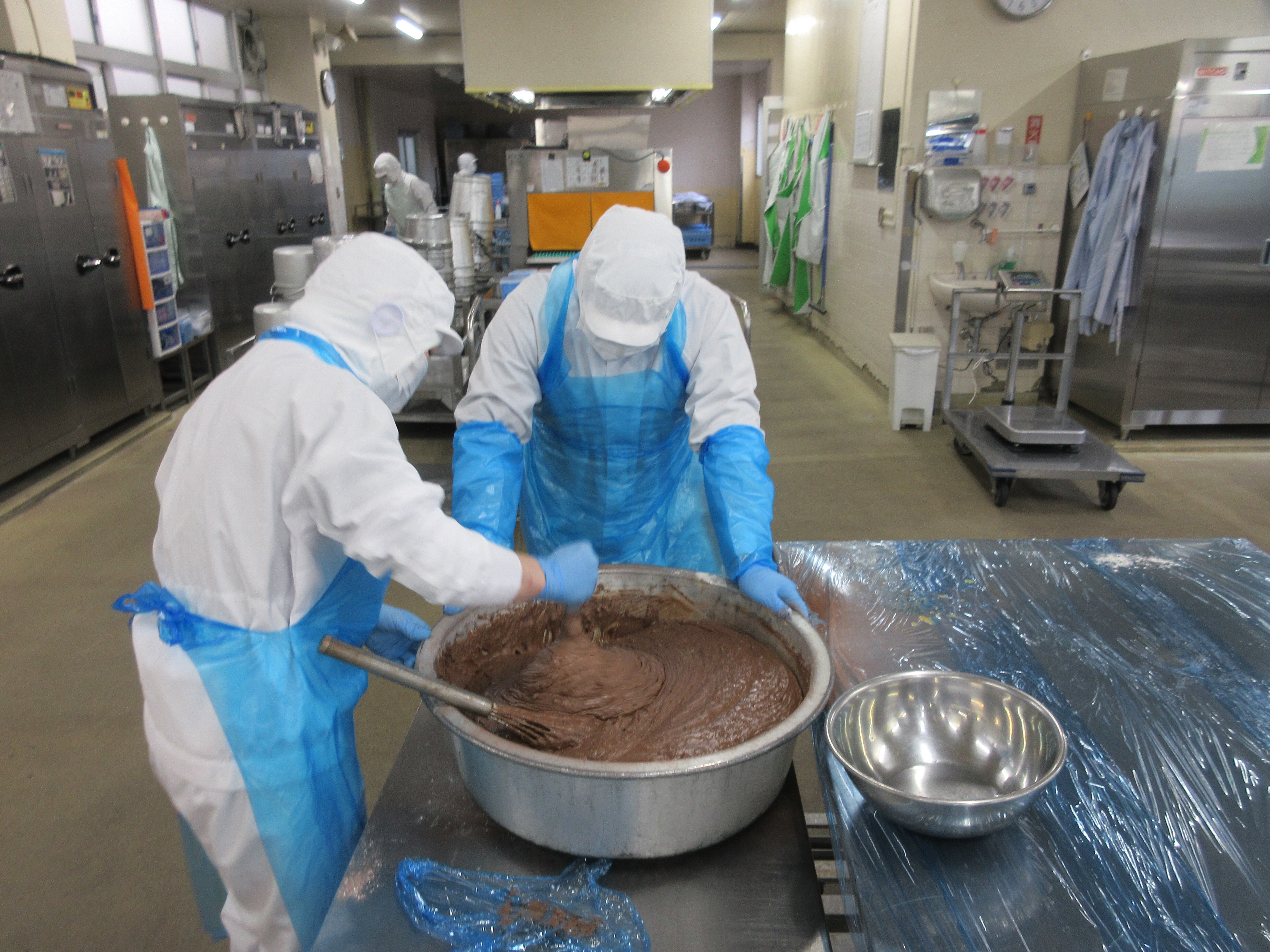 ↑明日のバレンタインデーに因んで約780個のショコラマフィンを調理員さんが作ってくれました!