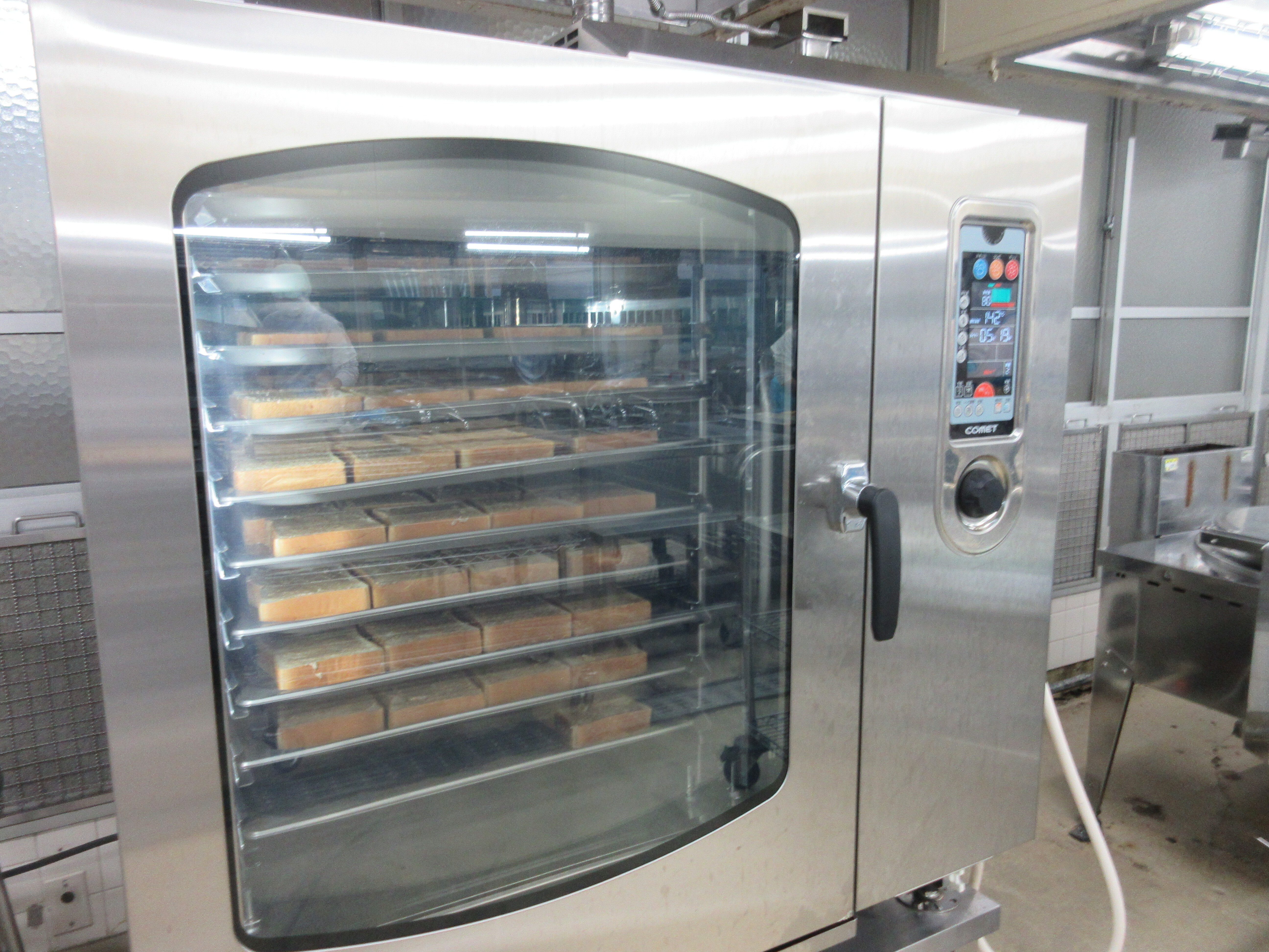 ↑全部で約800人分のセサミトーストを作ってくれました。スチコンでしっとり美味しく焼きあがりました。
