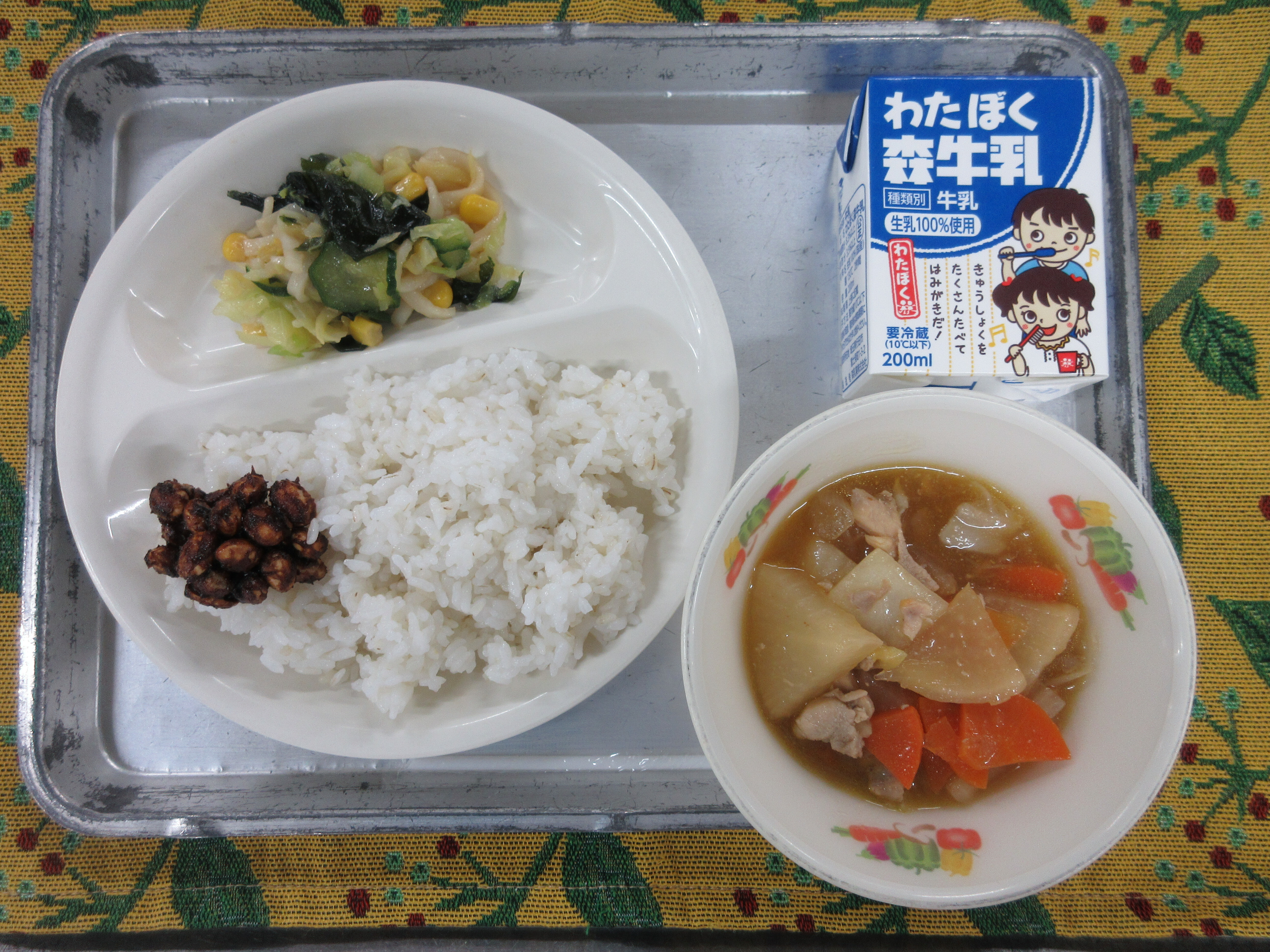 ↑鶏肉と大根の煮物は、4年3組の児童が紹介してくれた献立です。鶏もも肉を使うのがお勧めとのことで、お肉のうま味で美味しく煮ることができました。ほとんどのクラスが完食でした!