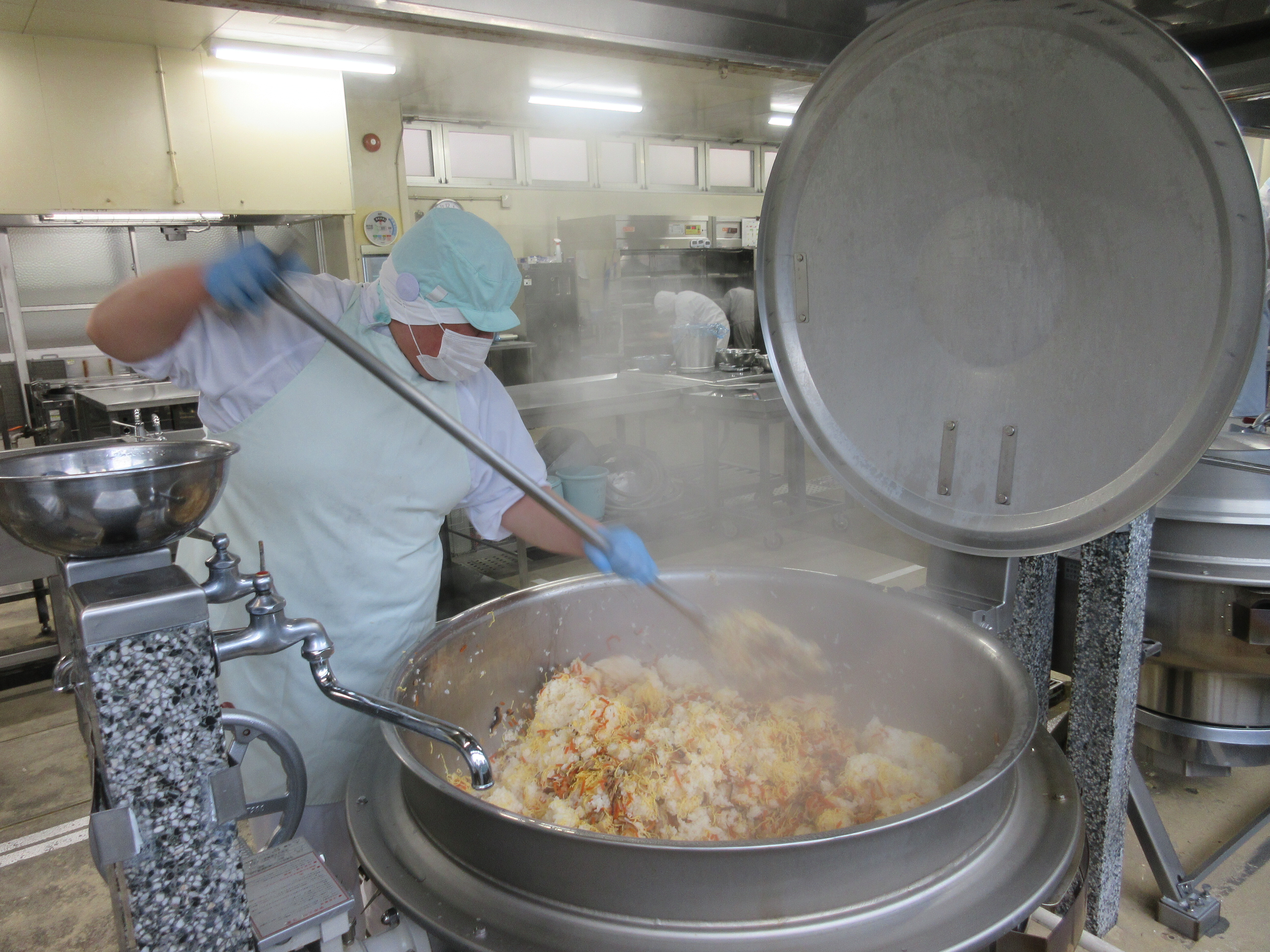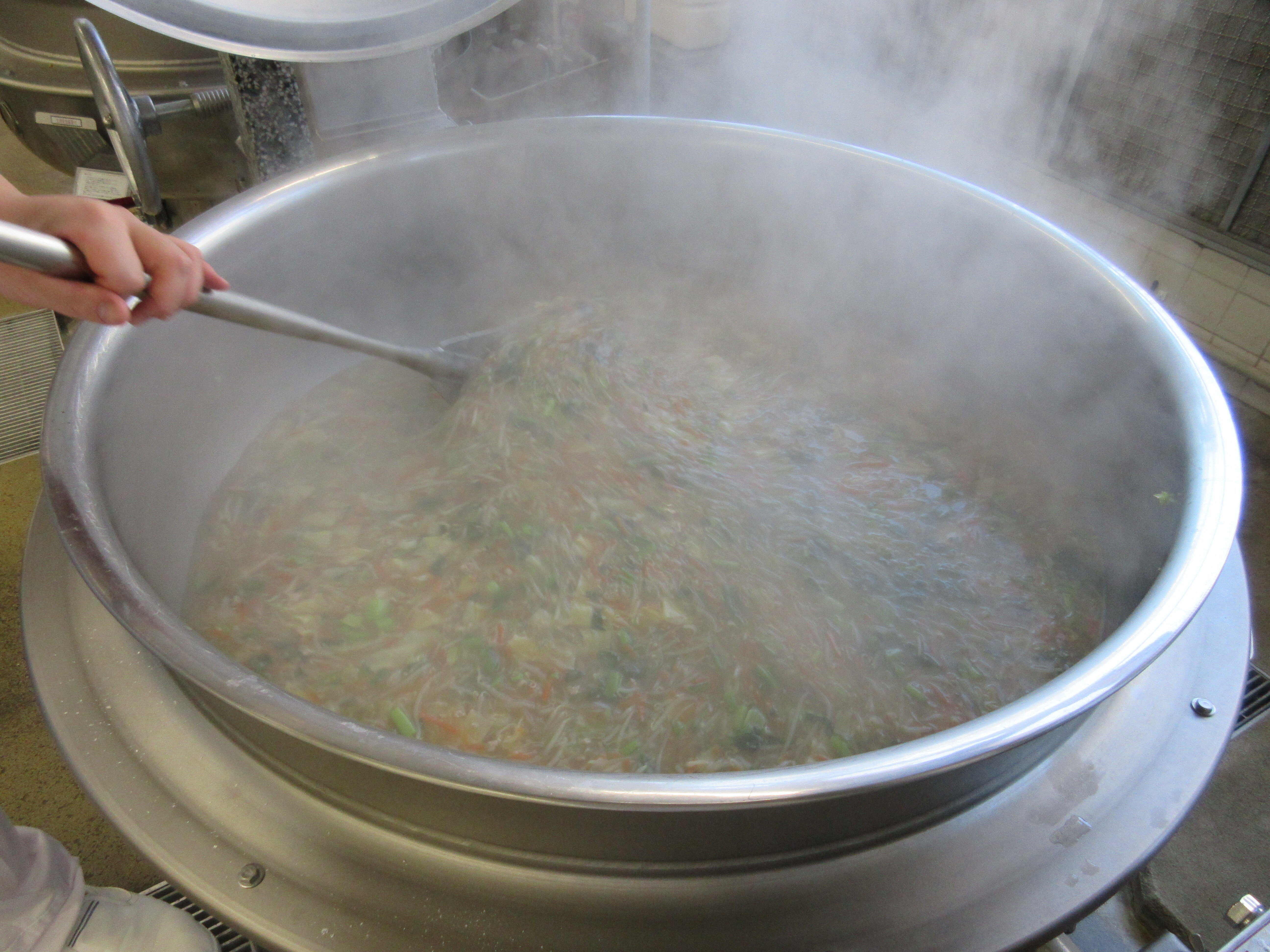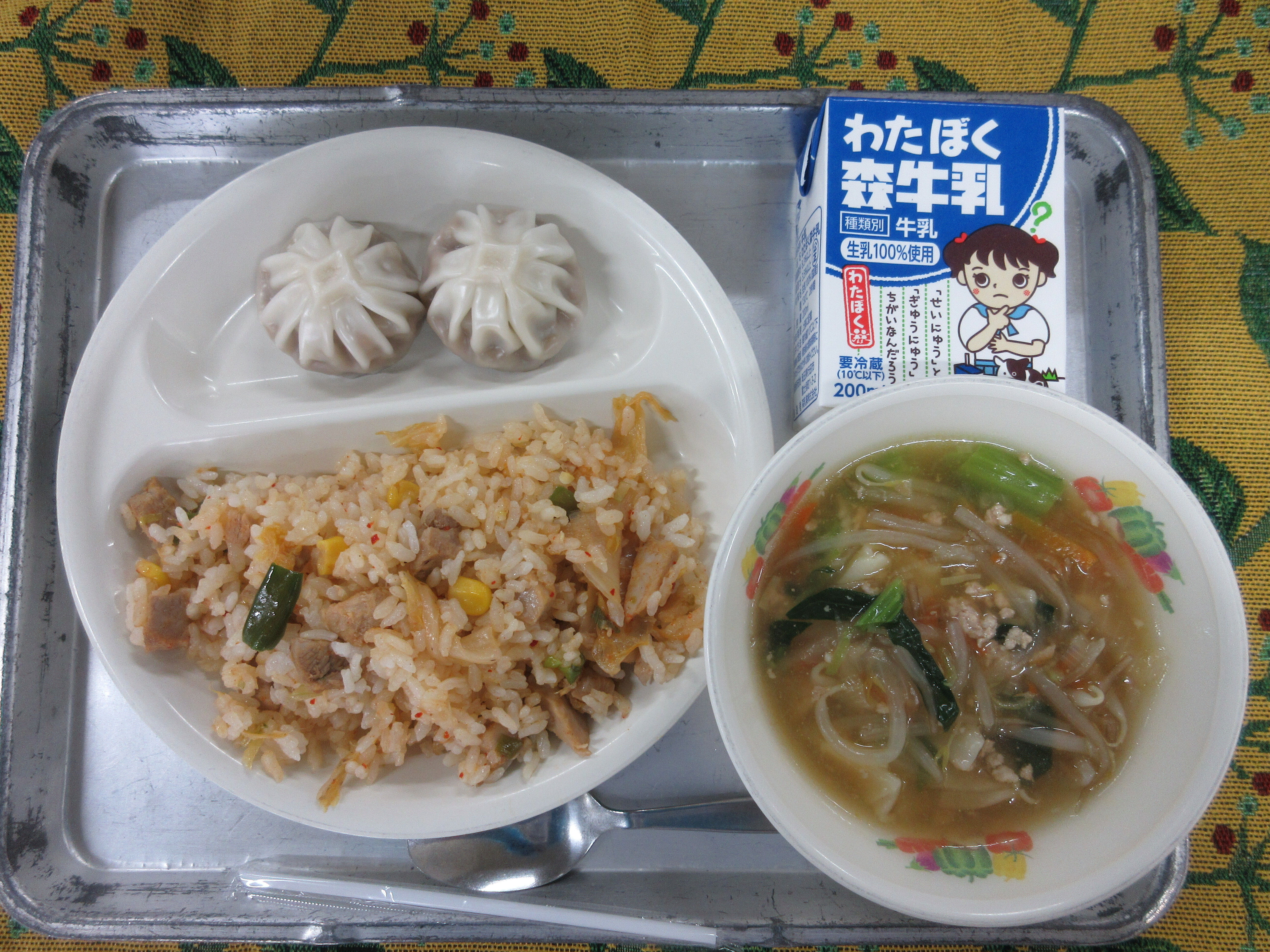 ↑小籠包はスチコンで蒸しました。初めて食べる児童が多かったですが、よく食べていました。チャーハンもパラっと美味しく炊けました!
