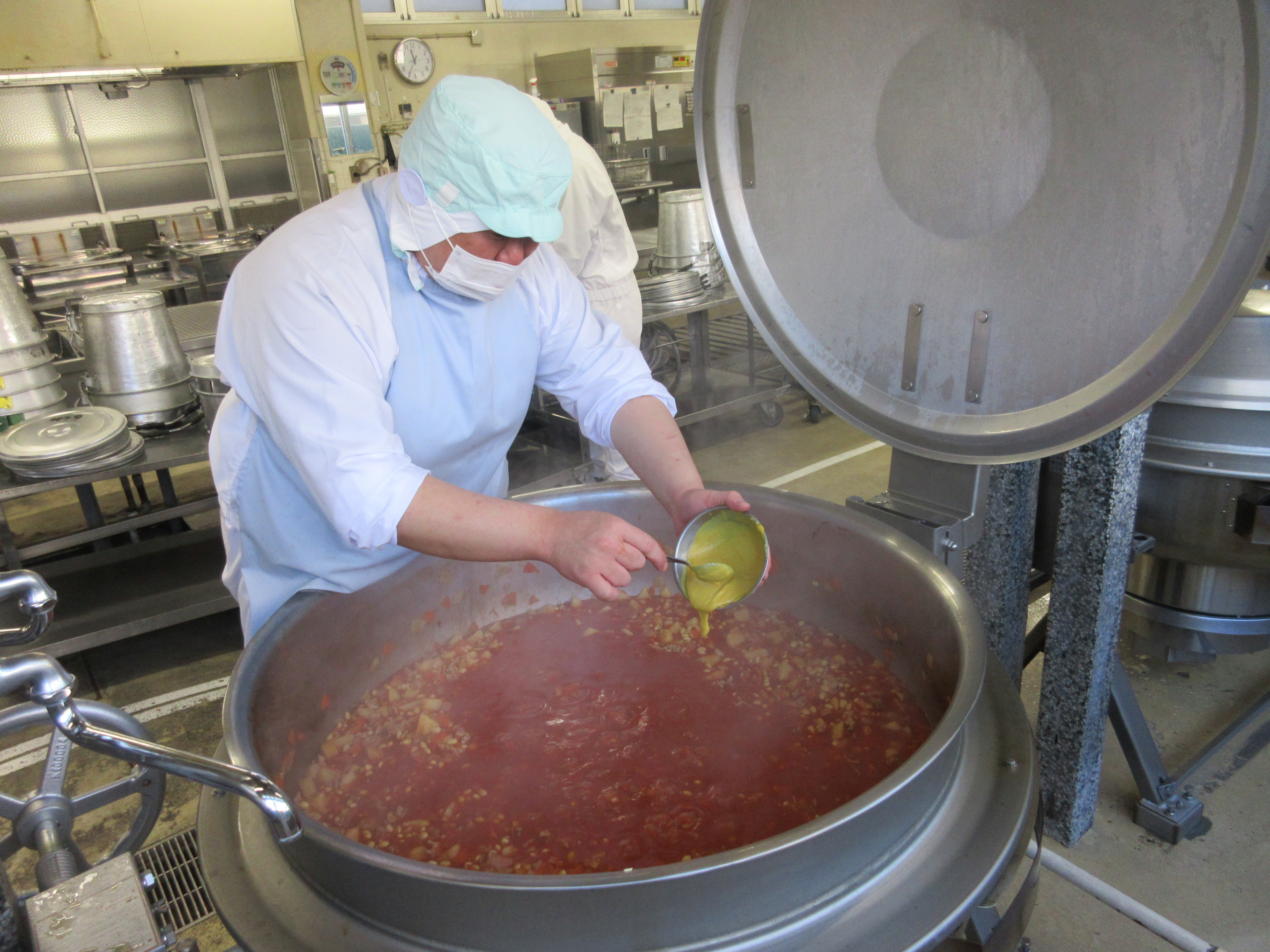 ↑四川豆腐は低学年と高学年で辛さを調節して作っています。