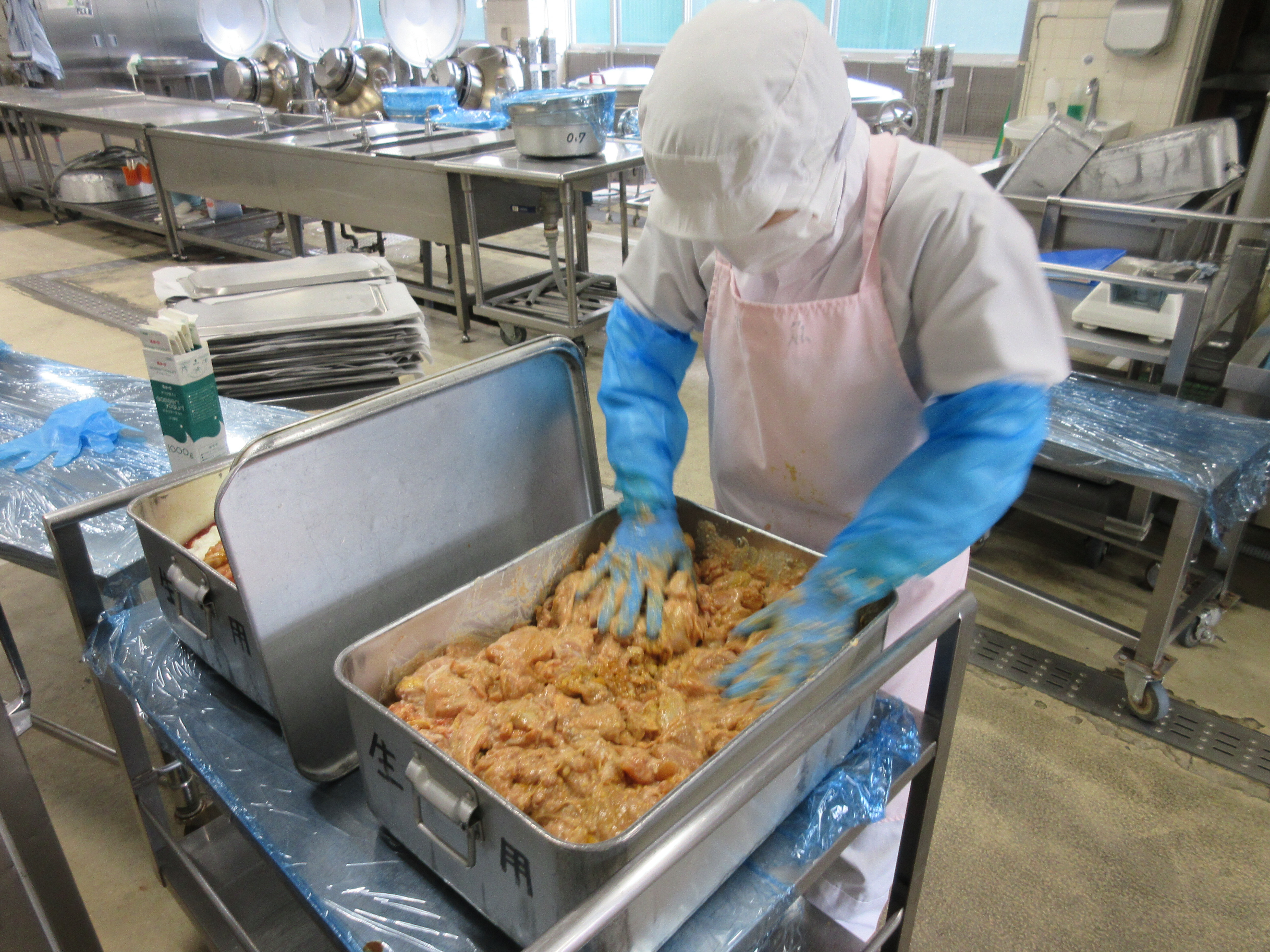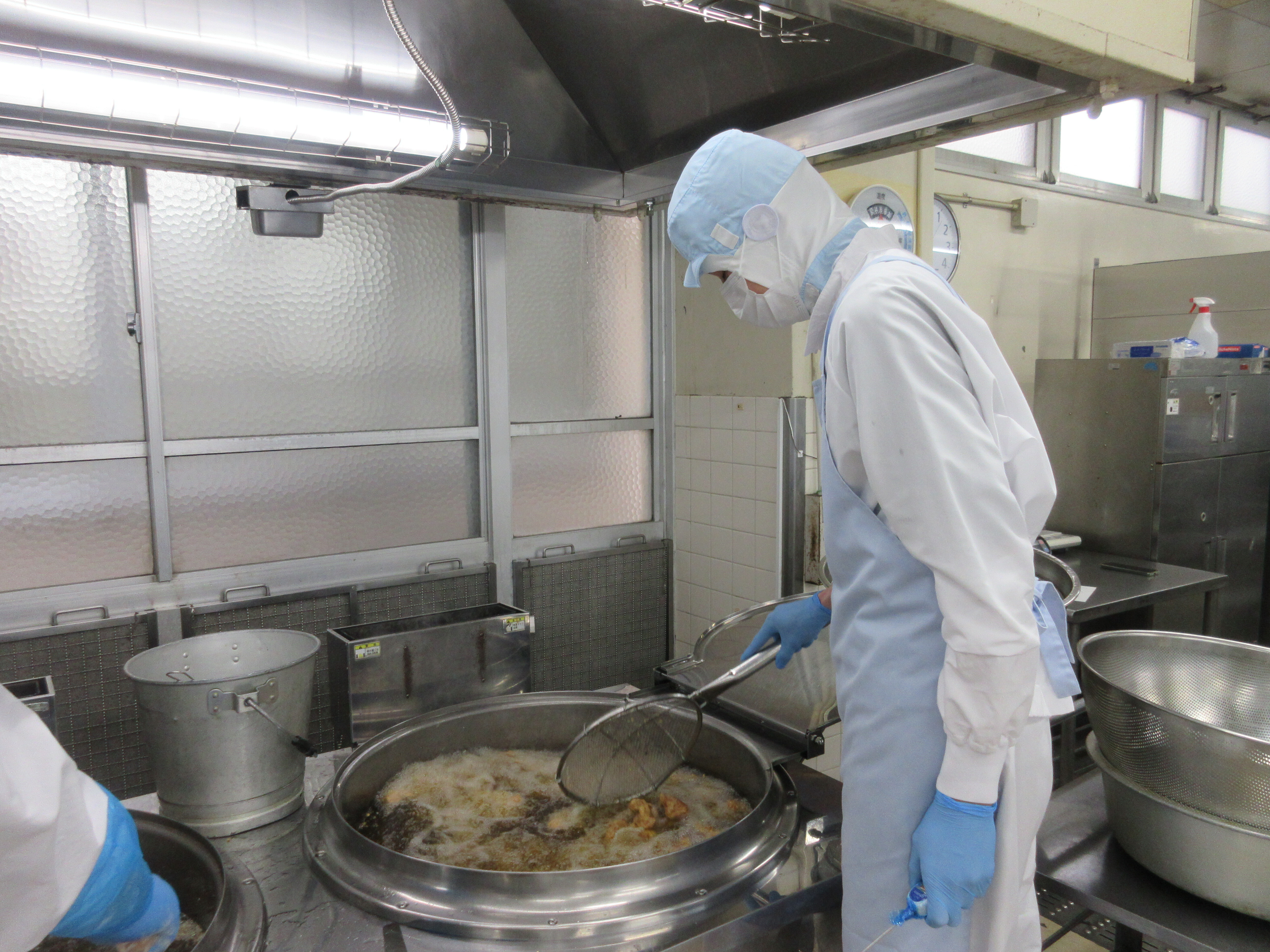↑調理員さんが美味しくから揚げを作ってくれました。残りはゼロで、みんなよく食べていました!