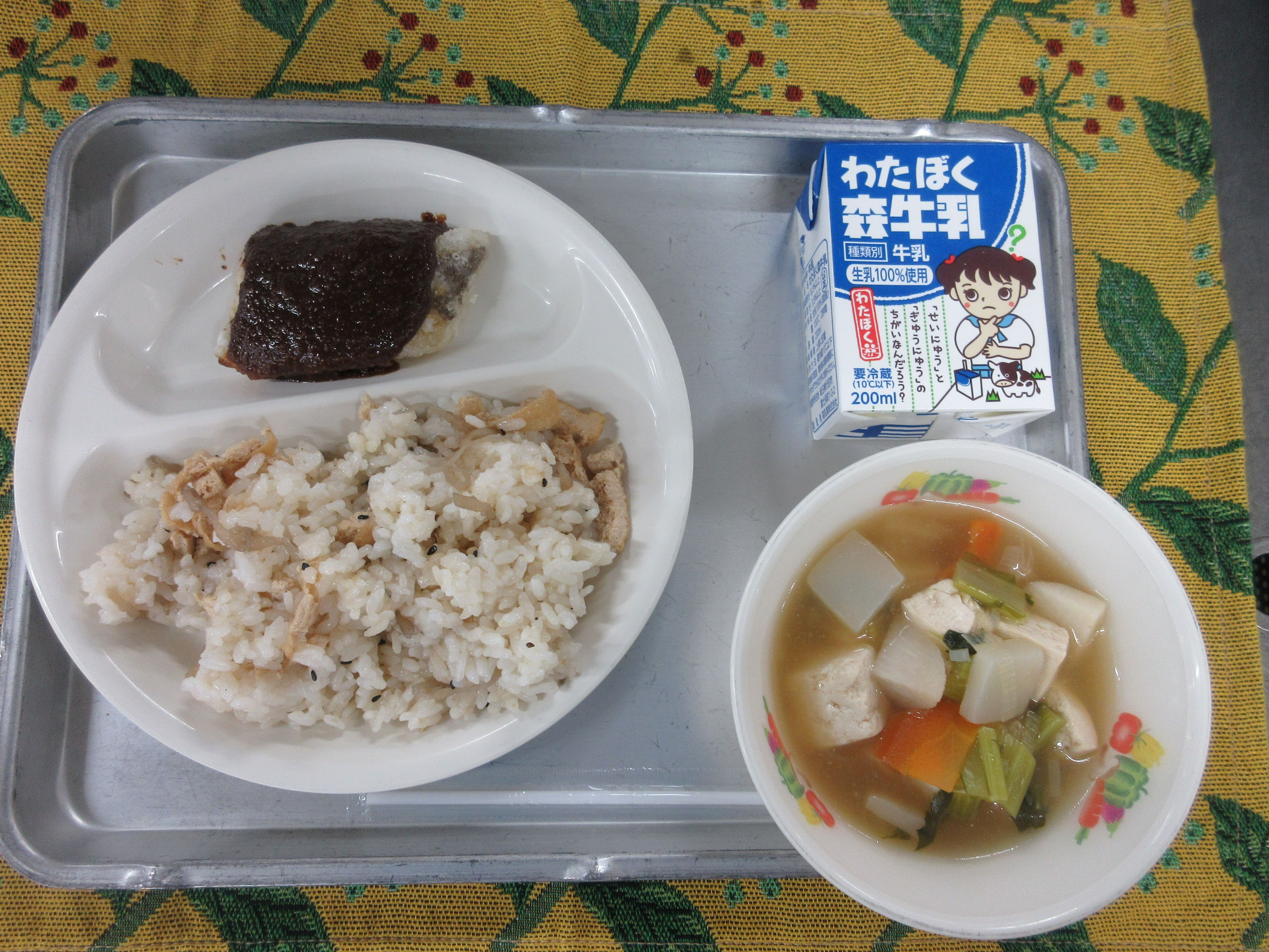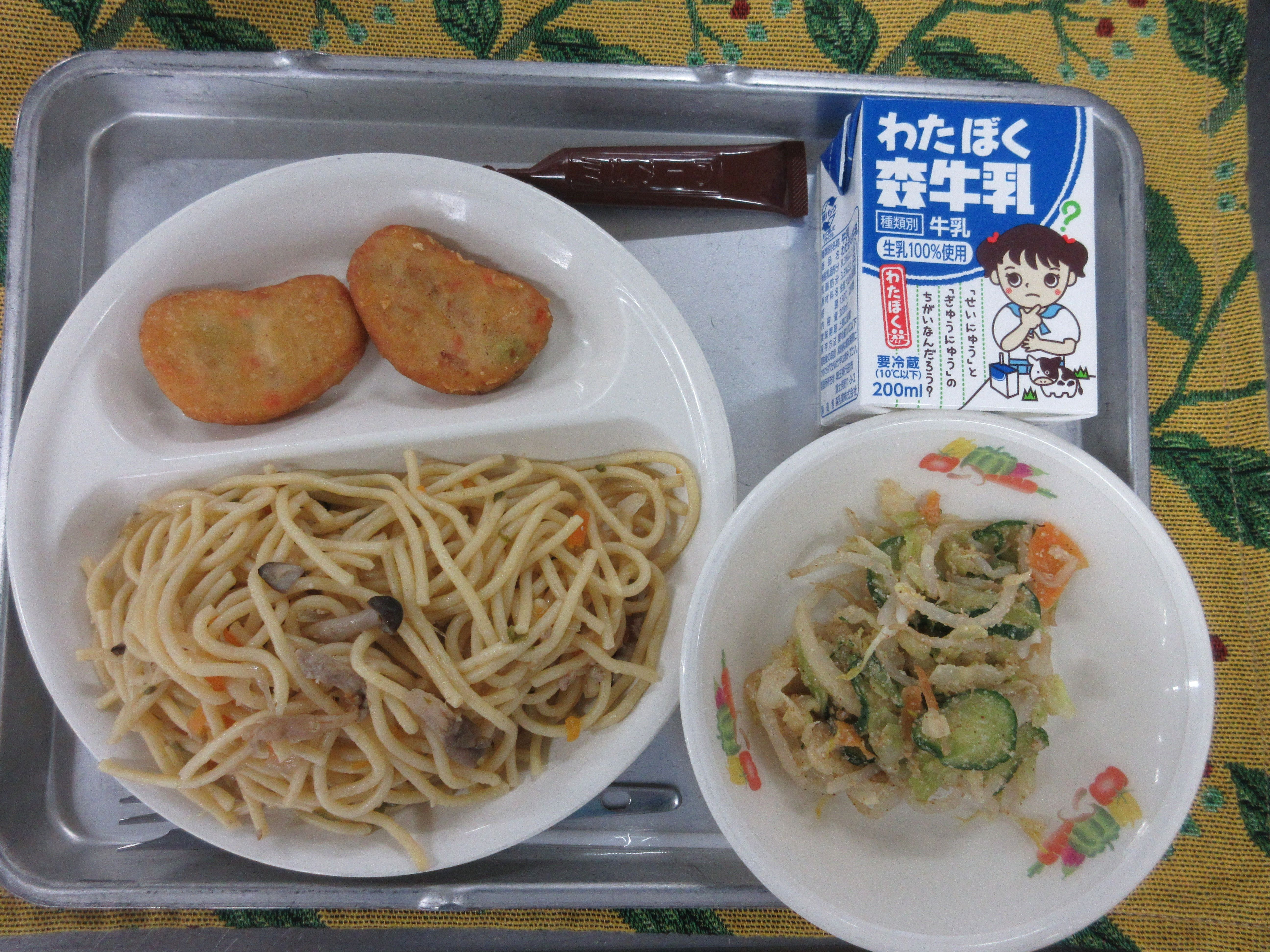 ↑「和風きのこスパゲティ」は5年4組の児童が、「豆腐ナゲット」は6年5組の児童が紹介してくれた献立です。2品とも人気で、ほとんどのクラスで完食していました。
