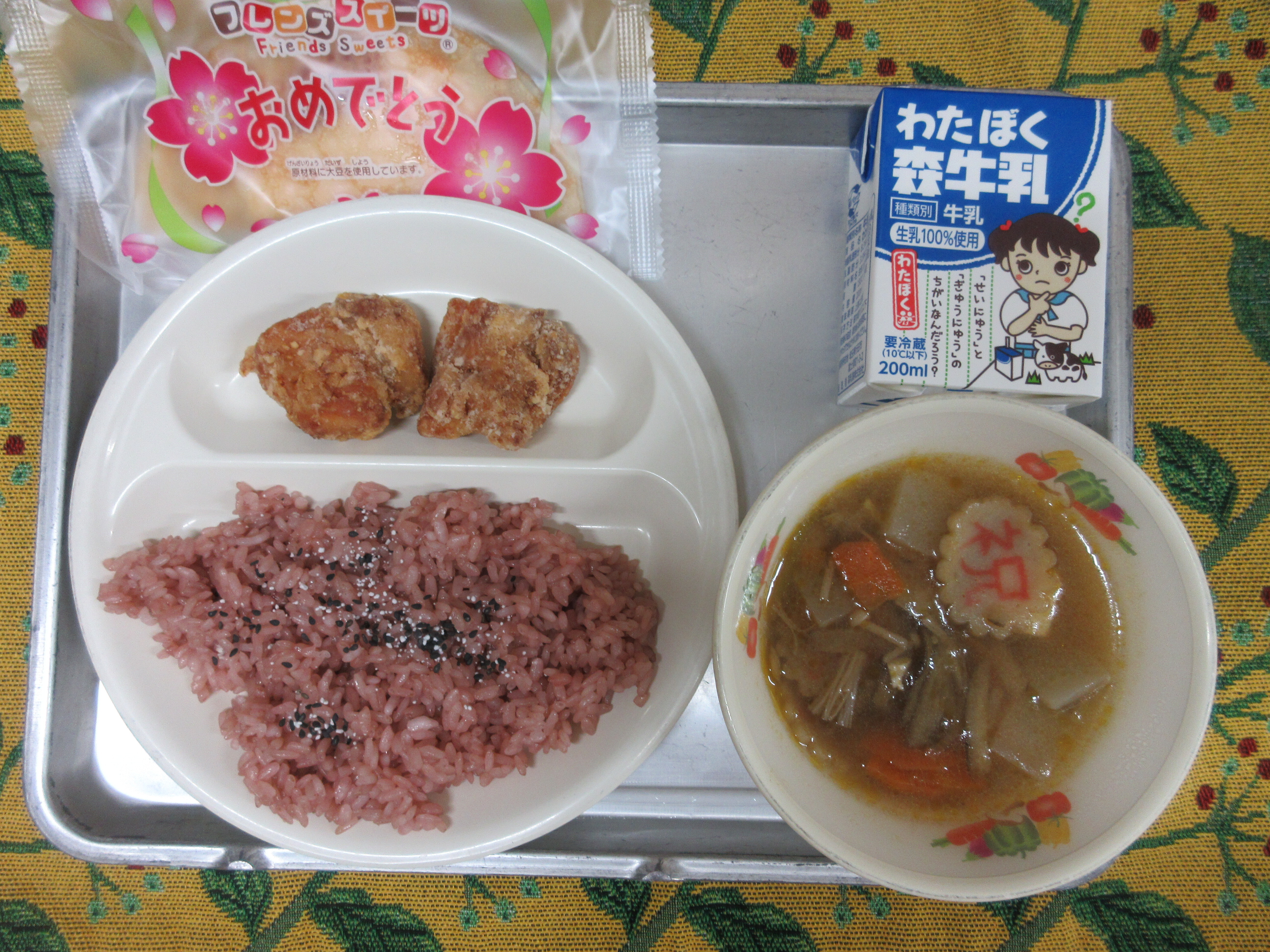 ↑給食最終日は、少し早いですが、6年生の卒業と1~5年生の進級をお祝いしたお祝い献立にしました。